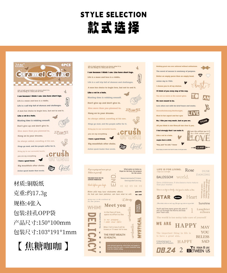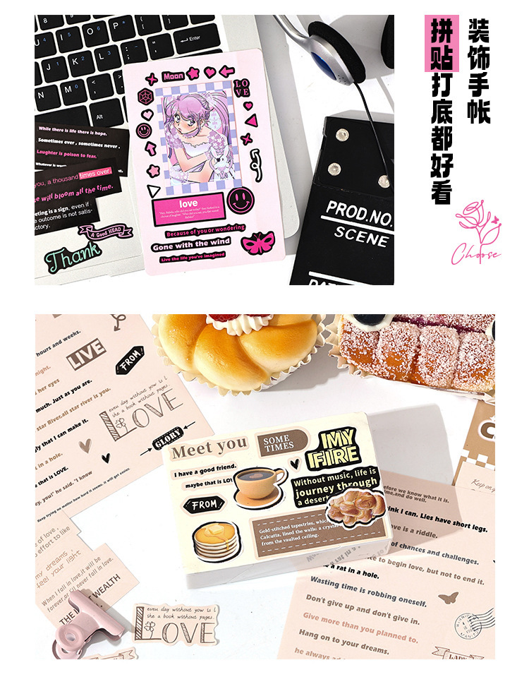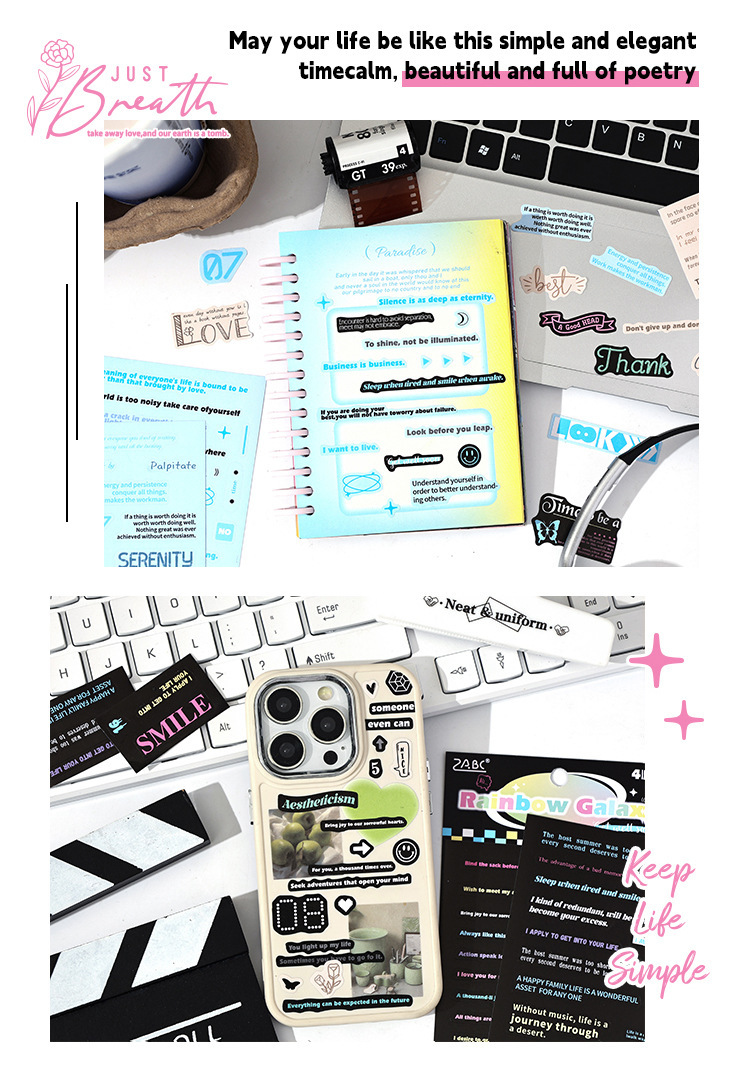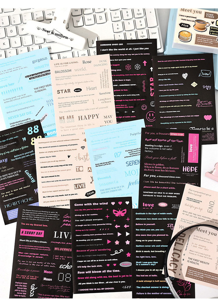 Calculantes adhesivos diarios diarios retro transfronterizos palabras populares inglesas pegatinas de frase