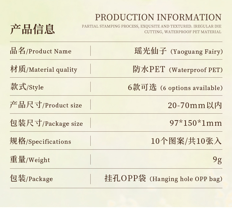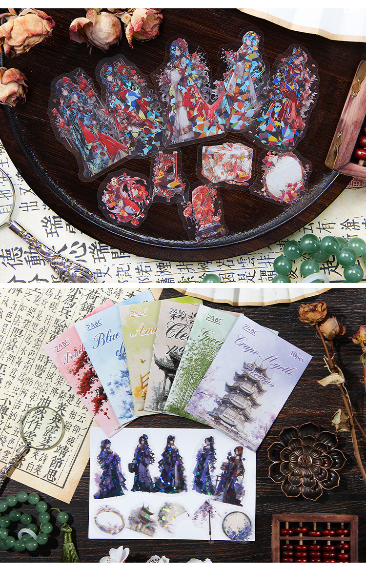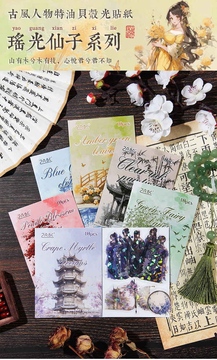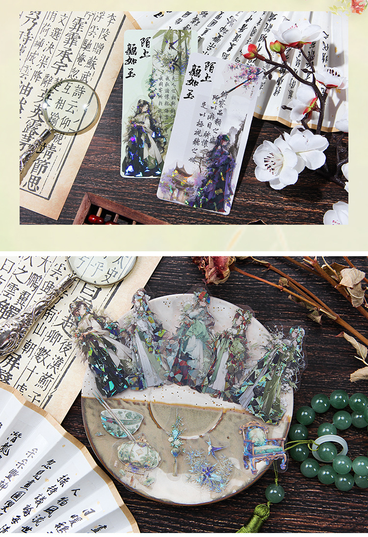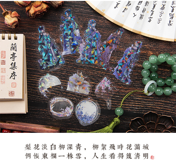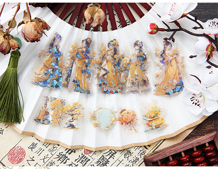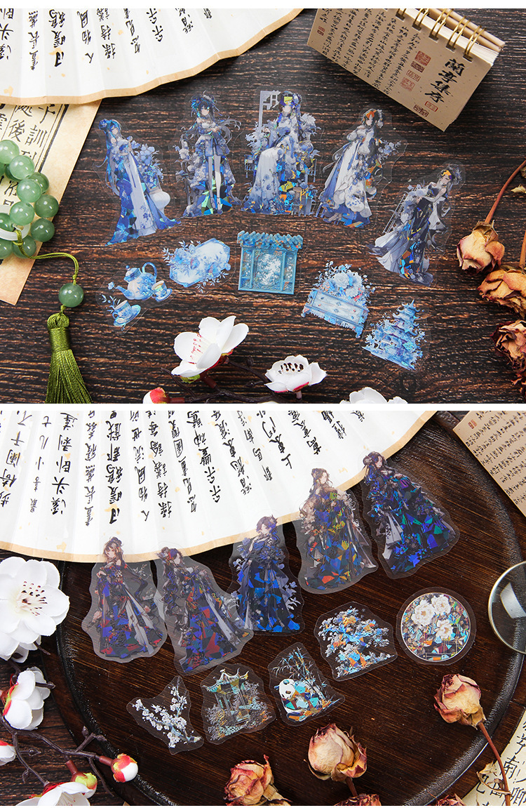 Yaoguang Fairy láser transparente pegatinas de mascotas impermeables bolsas DIY cuentas pegatinas de diario pegatinas de decoración de personajes antiguos