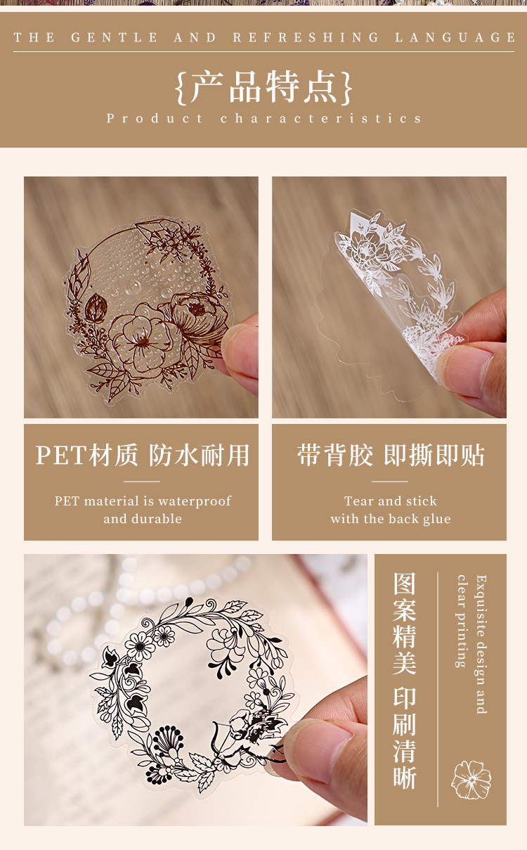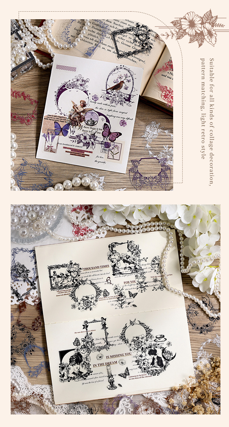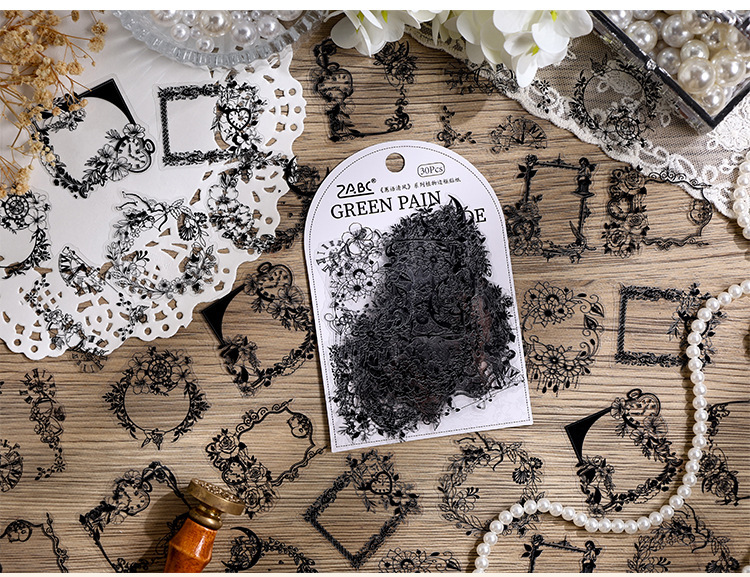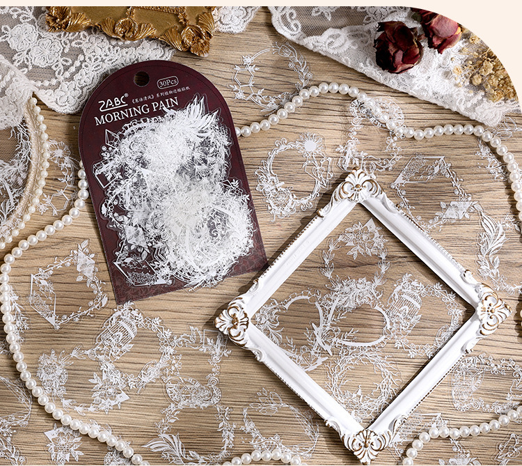 Jiyu viento limpio marco bolsas de pegatinas de cuentas de mano transparentes impermeables materiales de cuentas de mano de mascotas retro encaje bolsas de pegatinas de cuentas de mano