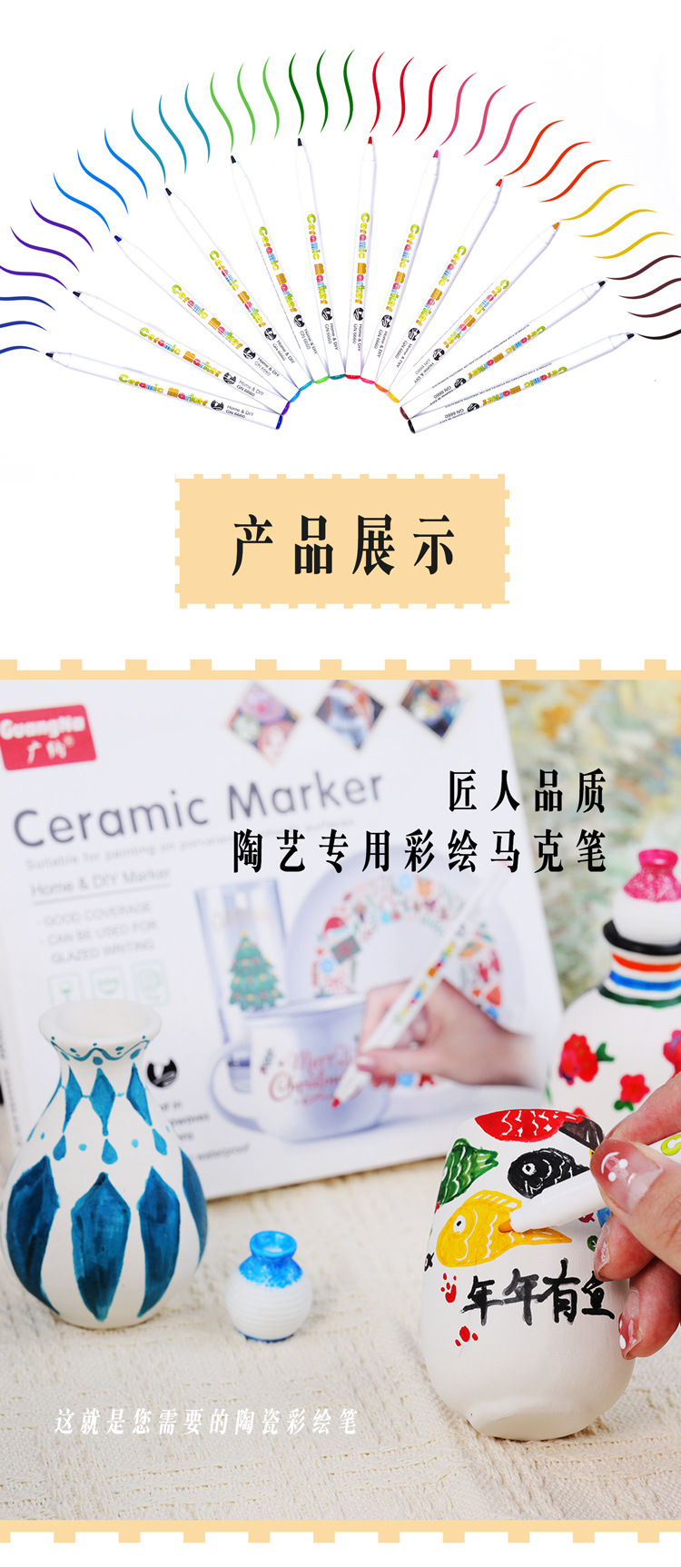 Guangna 6660 pluma de cerámica 12 marcador de color impermeable no se desvanece DIY pintado a mano pluma de cerámica de vidrio
