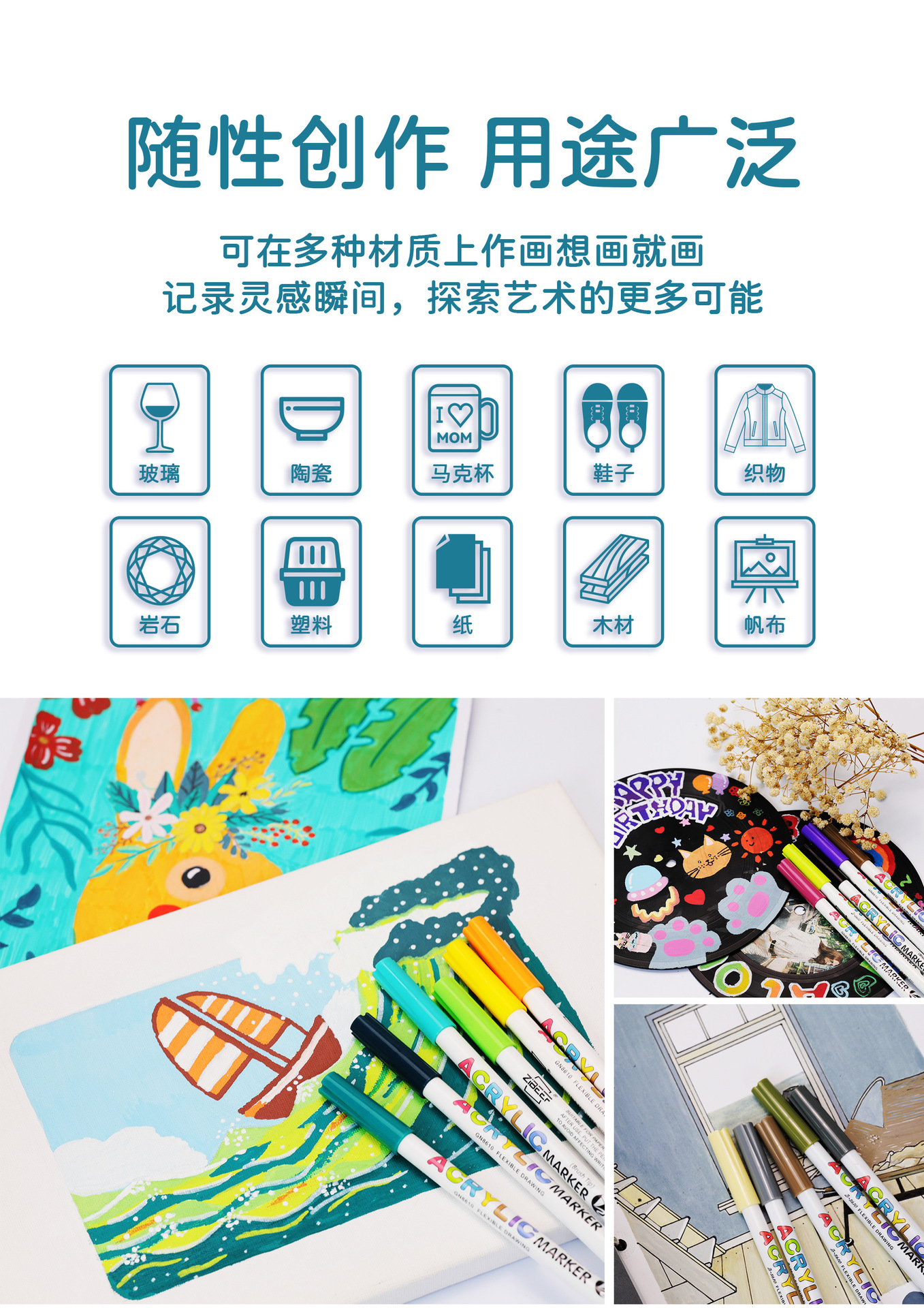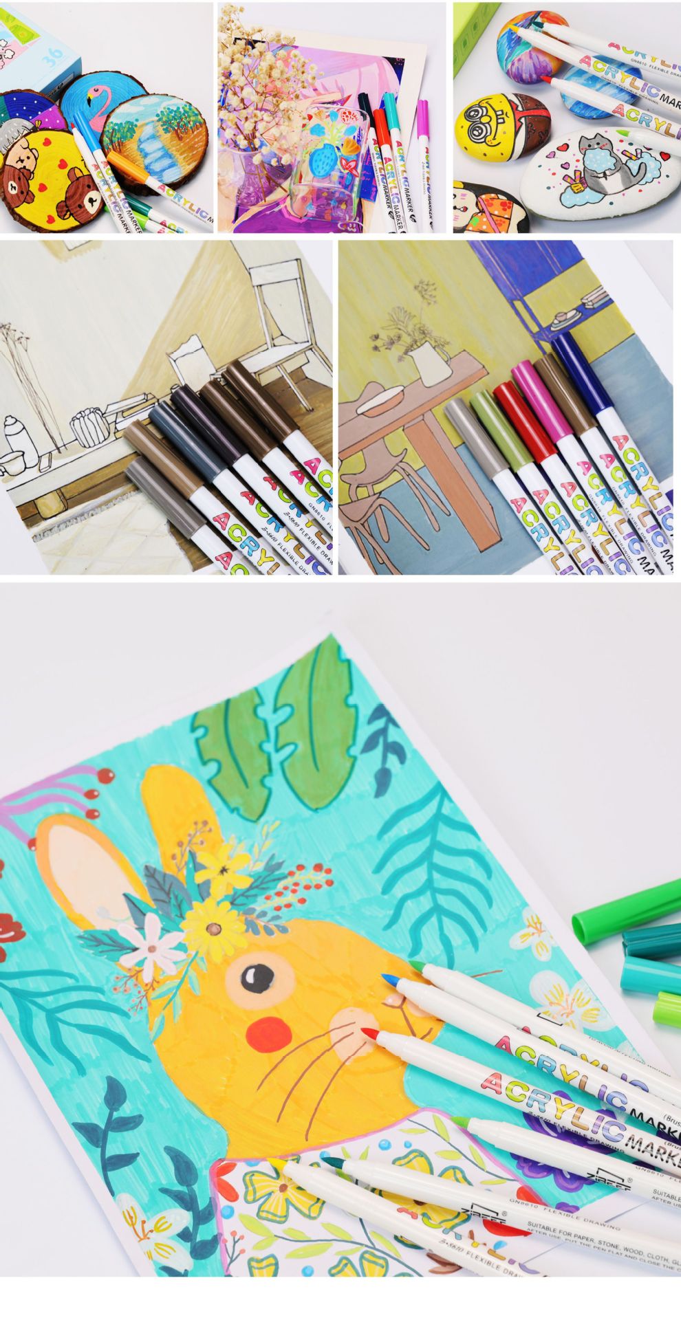 Juego de rotuladores acrílicos de cabeza suave Yueyang, rotuladores de colores DIY de 12 colores, rotuladores de pintura de válvula de cabeza suave aceitosa