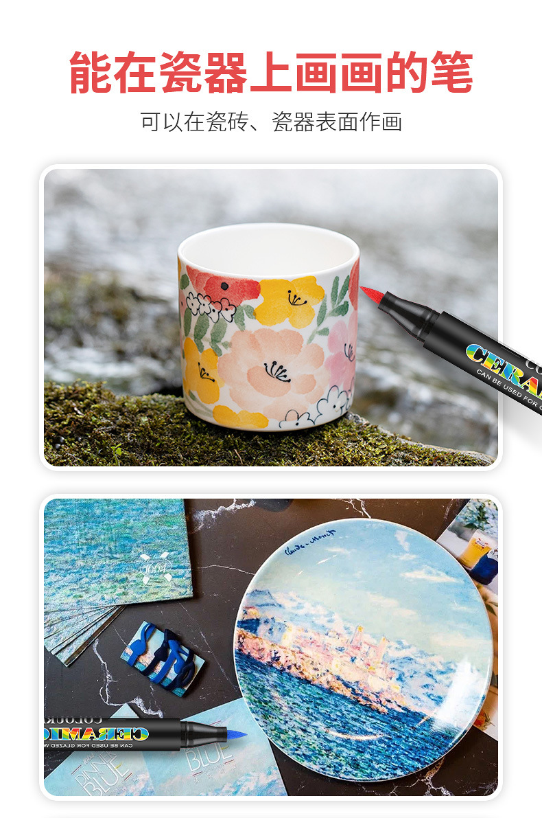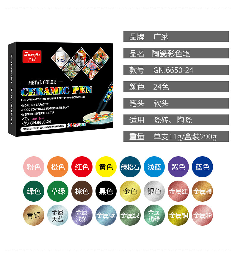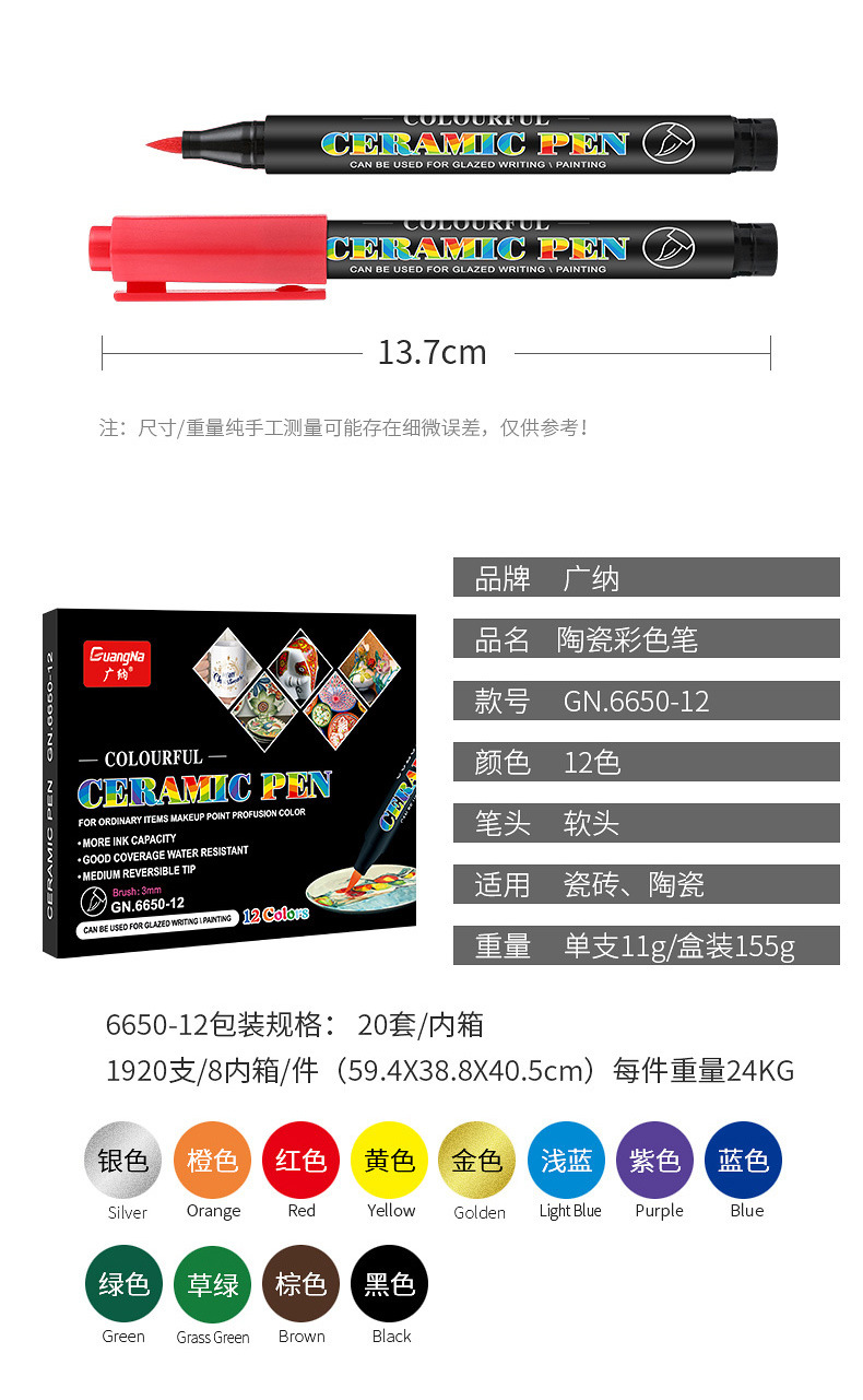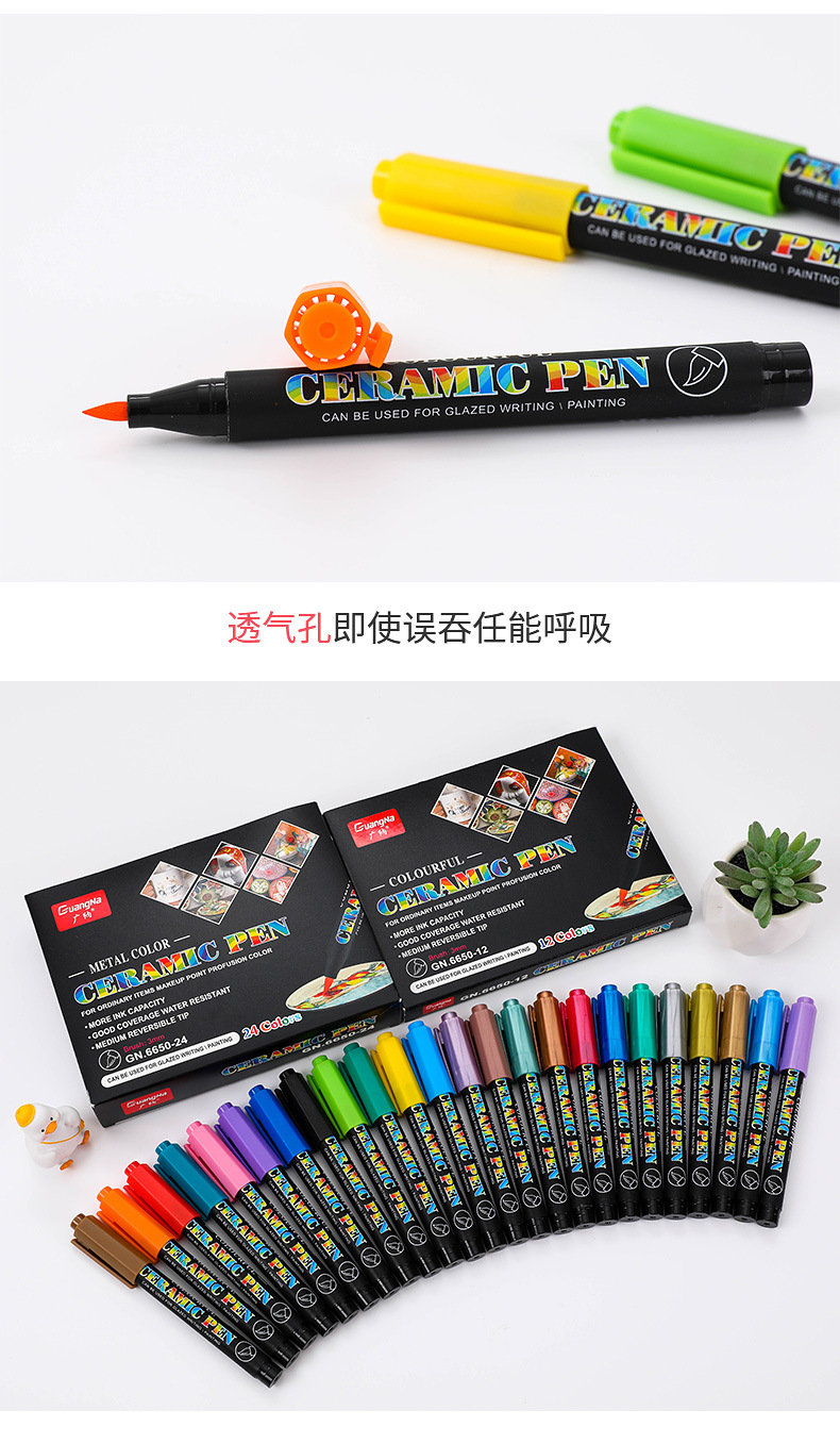 Guangna 6650 suave cabeza de cerámica pintura cepillo traje 12/24 color DIY creativo vidrio porcelana graffiti suave pluma