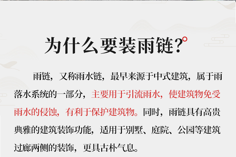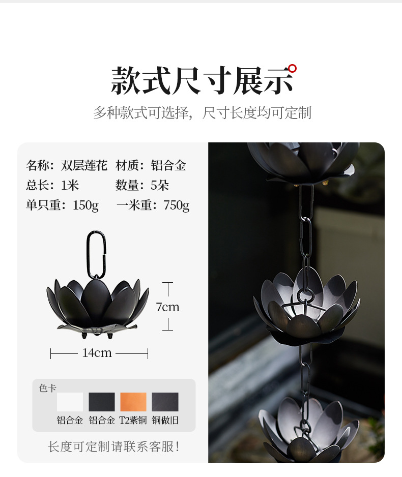 | Especificaciones | Blanco paso a paso Lotus [aleación de aluminio] 1 M 5 flores,Negro paso a paso Lotus [aleación de aluminio] 1 M 5 flores,Paso a paso Lotus [cobre rojo] 1 M 5 flores,Paso a paso Lotus [cobre rojo viejo] 1 M 5 flores,Acorn de cobre de imitación [aleación de aluminio] 1 M 5 flores,Black Acorn [aleación de aluminio] 1 M 5 flores,Acorn [cobre rojo] 1 M 5 flores,Acorn [cobre rojo viejo] 1 M 5 flores,Tubo de bambú negro [aleación de aluminio] 1 M 6 flores,Imitación de cobre de drenaje fila recta [aleación de aluminio],Cadena de lluvia de drenaje fila recta [cobre rojo],Codo de drenaje de cobre de imitación [aleación de aluminio],Codo de drenaje de la cadena de lluvia [cobre rojo],Bandeja de agua de cadena de lluvia de cobre imitación [aleación de aluminio],Placa de agua de cadena de lluvia [Cobre] |
