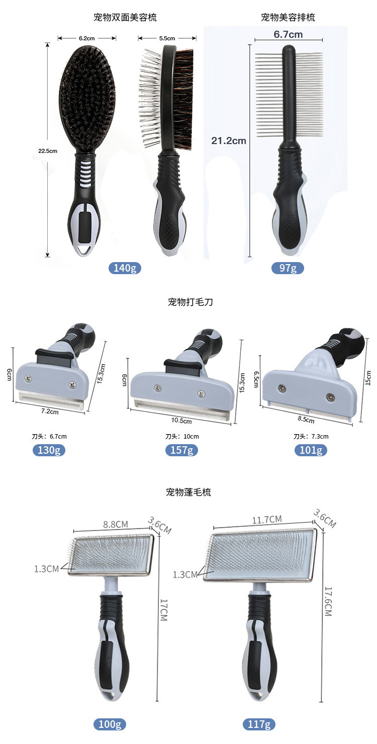 | Colores | Peine de pelo pequeño,Peine de piel grande,Peine de pelo rizado de cabeza cuadrada pequeña,Peine de pelo rizado de cabeza cuadrada grande,Peine pequeño,Peine de depilación grande,Peine de doble cara,Peine de nudo multifuncional,Peine de doble cara,Peine de rastrillo de doble fila,Cuchillo cerámico con cuchilla,Cuchillo pequeño,Cuchillo de pelo grande |