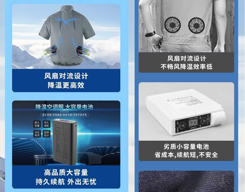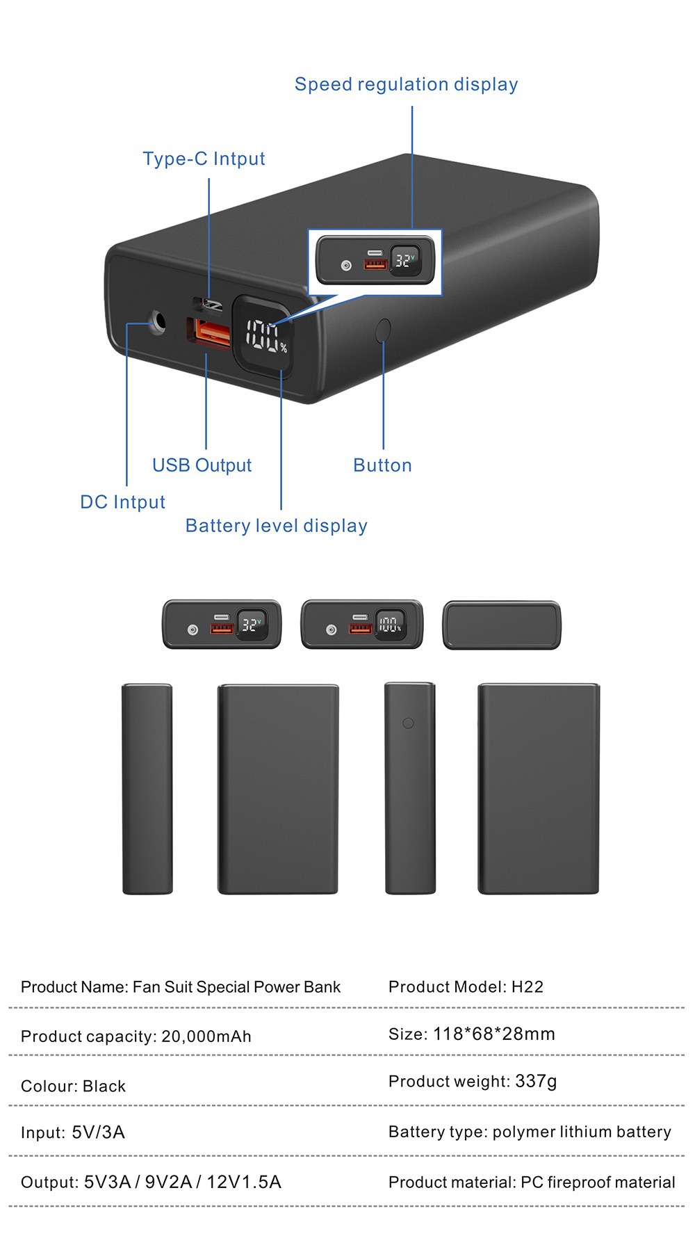 | Color | Gris oscuro - ropa única sin ventilador, gris claro - ropa única sin ventilador, gris oscuro - conjunto de ventiladores de 12v, gris claro - conjunto de ventiladores de 12v, gris oscuro - conjunto de ventiladores de 12v + Banco de energía de 12v20000, conjunto de ventiladores de 12v20000, gris claro - conjunto de ventiladores de 12v + Banco de energía de 12v20000 |