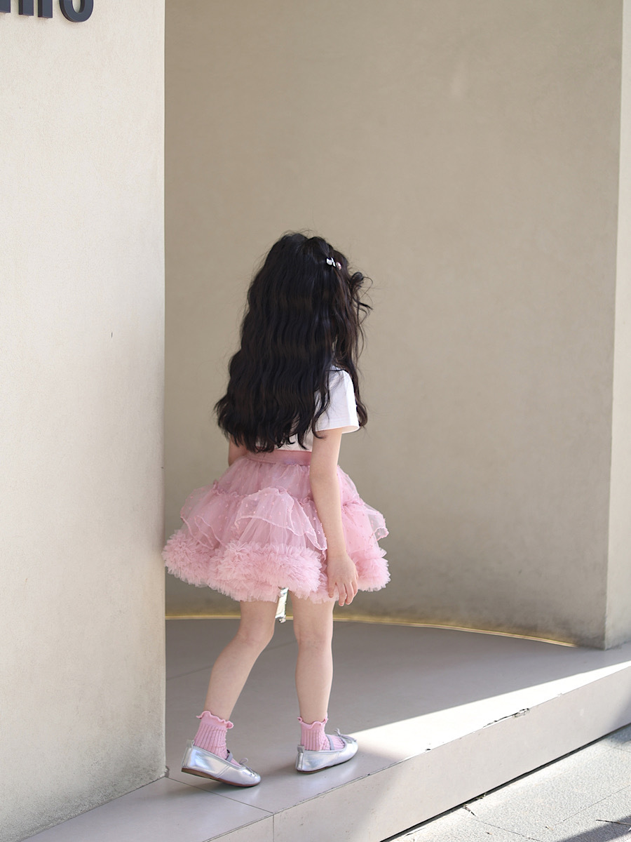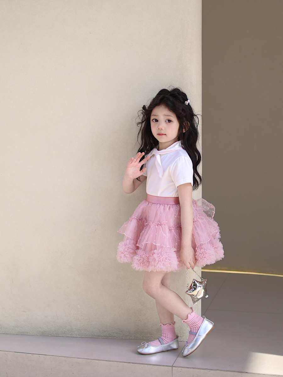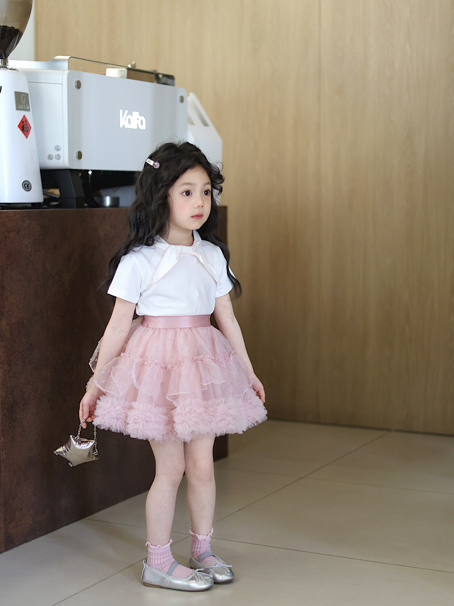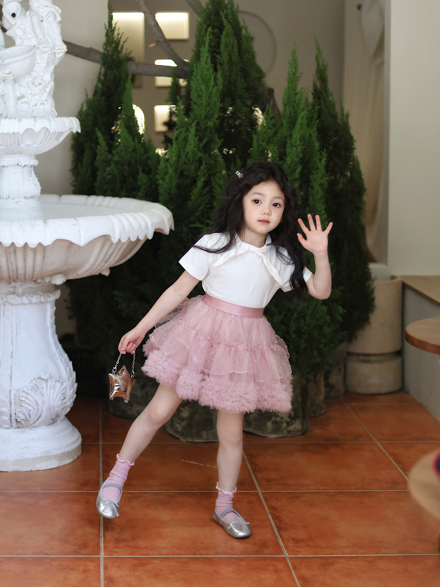 | Colores | Falda de lunares flocado rosa,Camiseta de pajarita de borde rosa |