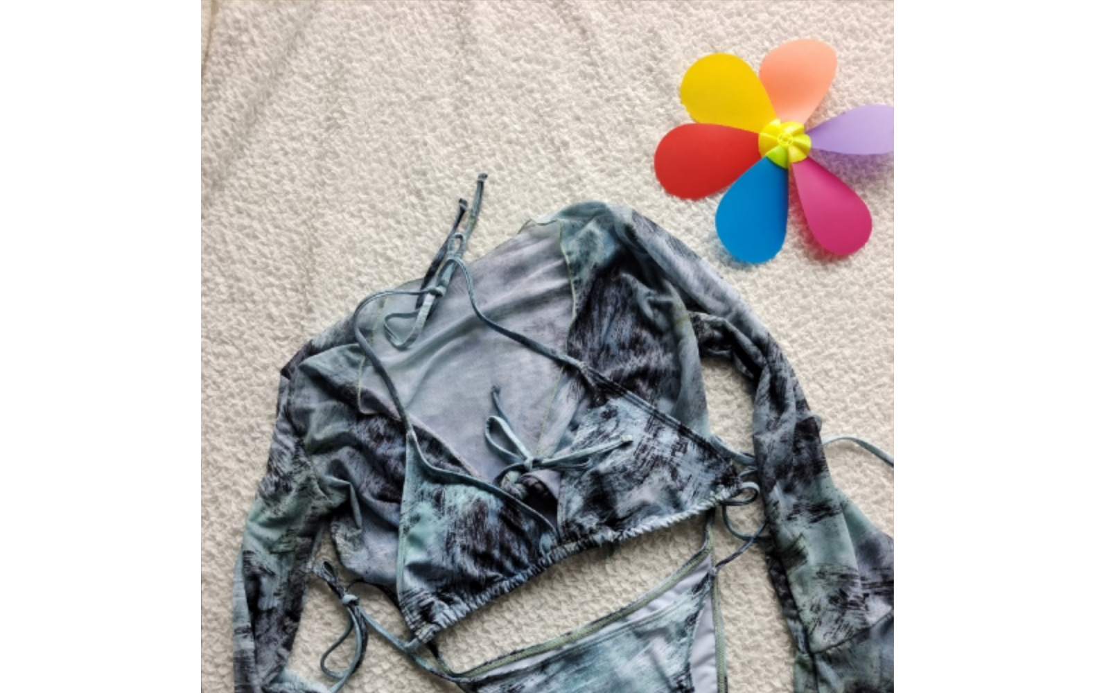 Europa y los Estados Unidos Amazon tres piezas bikini impresión de hojas correa de cintura de mangas largas trajes de baño de chiffon deportivo femenino