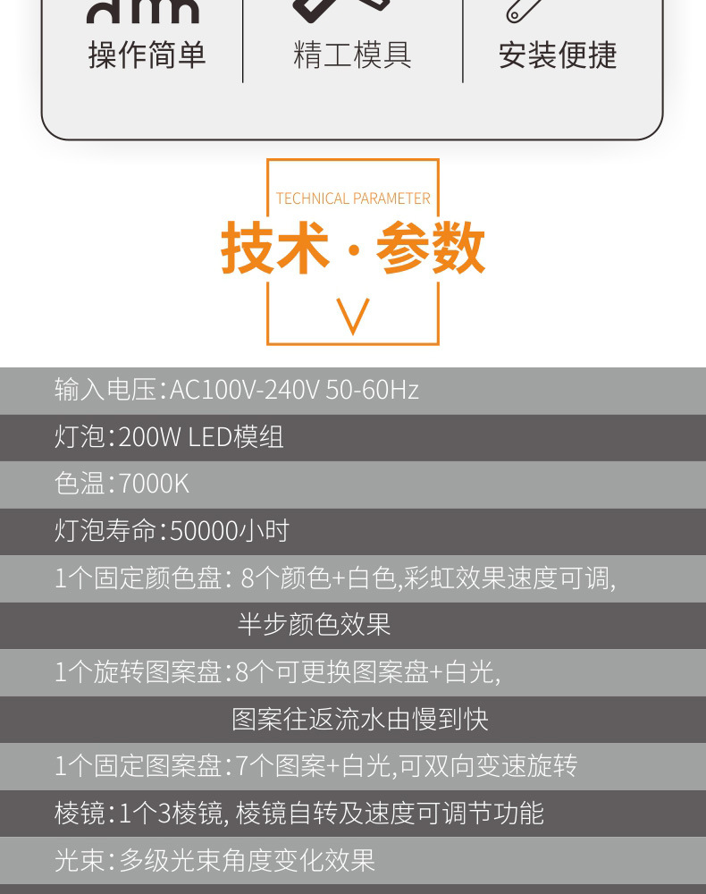 | Especificaciones | Led200bsw sacude la cabeza - modelo de módulo |