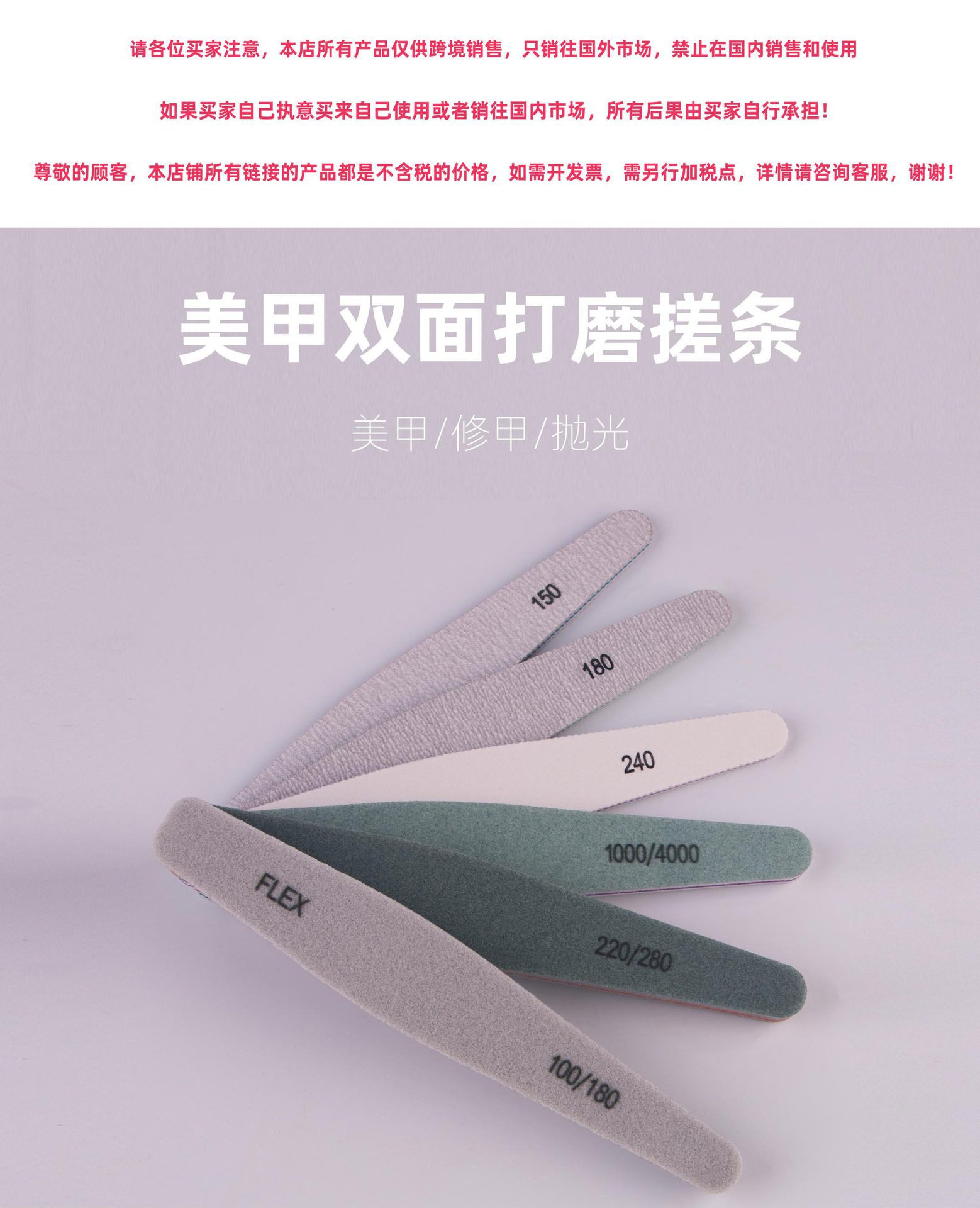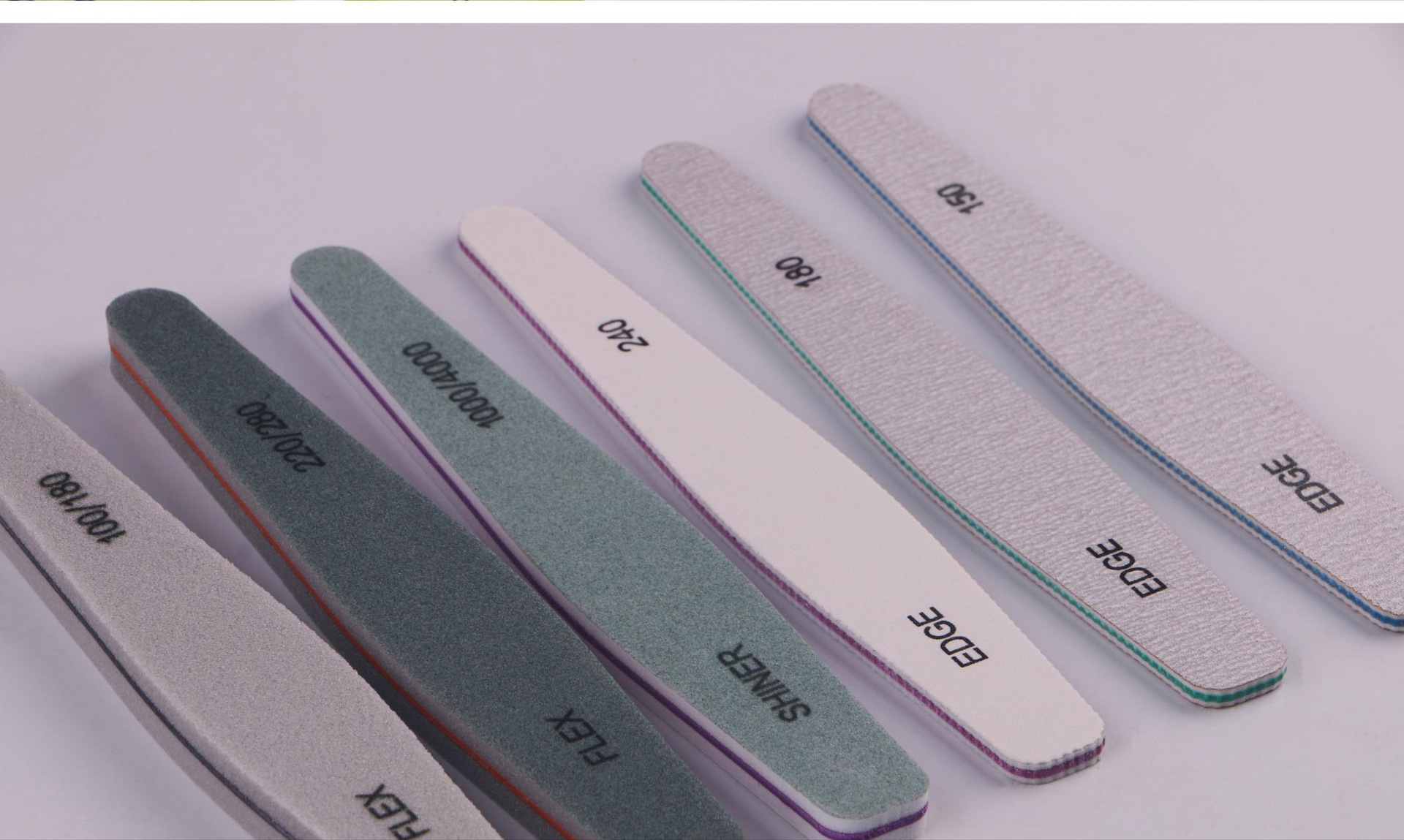 Fábrica profesional tira de frotamiento de uñas al por mayor 100-180 malla lima de uñas gris y blanco papel de lija de uñas frotamiento y pulido
