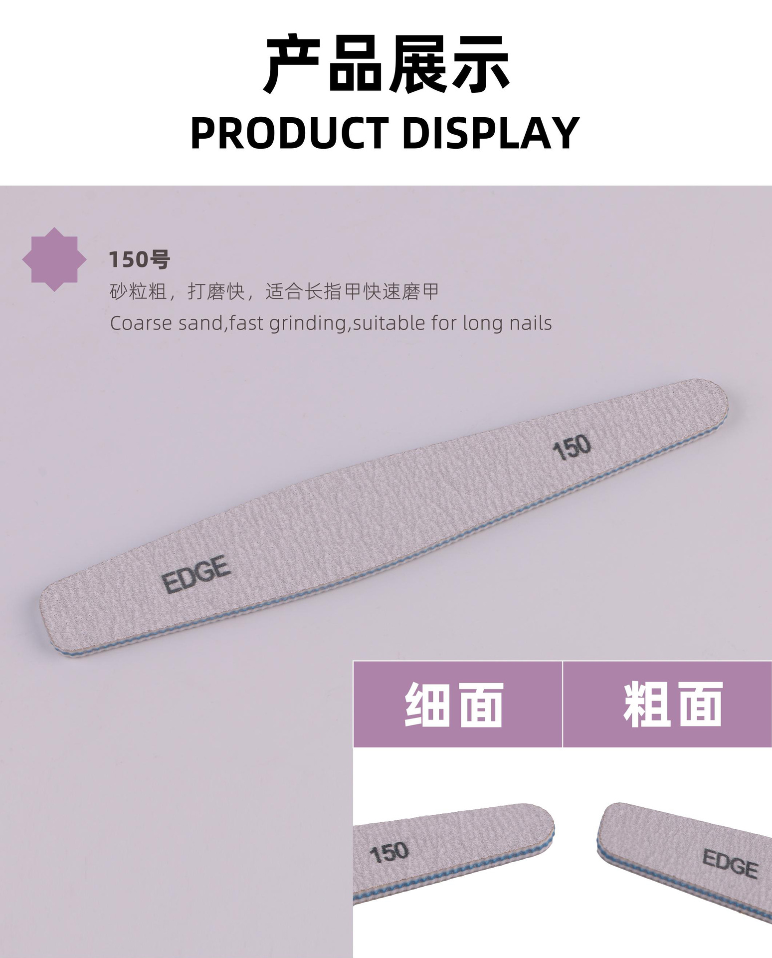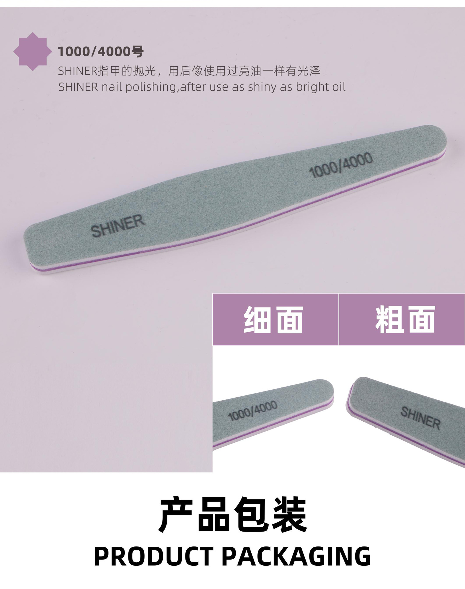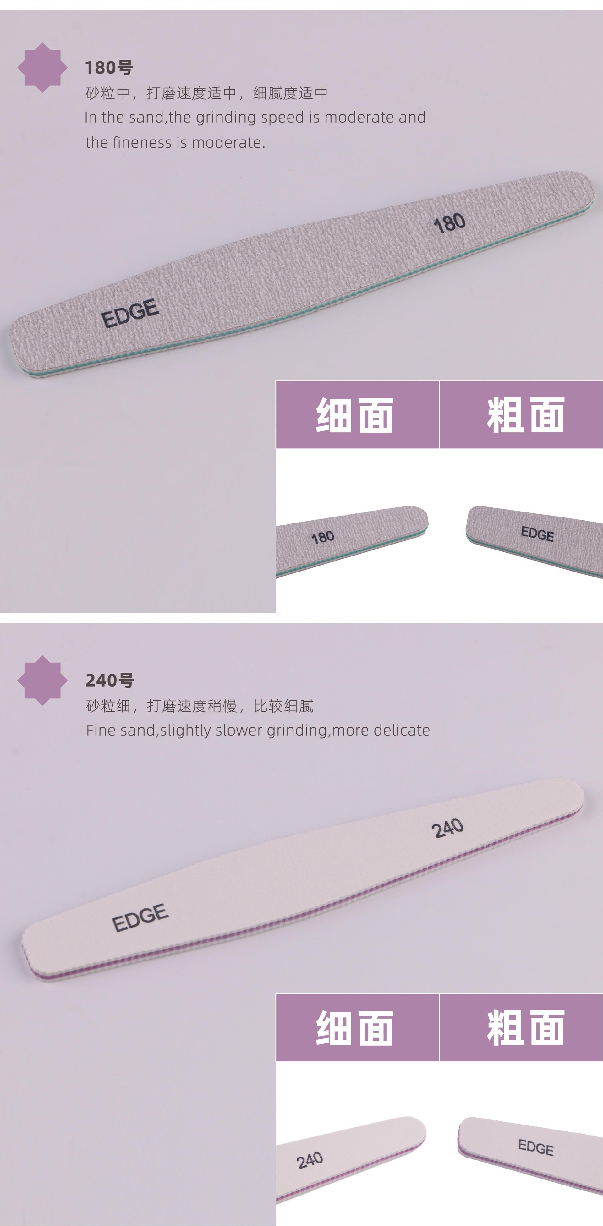 Archivo de papel de lija resistente al desgaste estrella Fuji Fábrica directa diamante uñas frotar Corazón Púrpura dentado tablero de goma pulido archivo