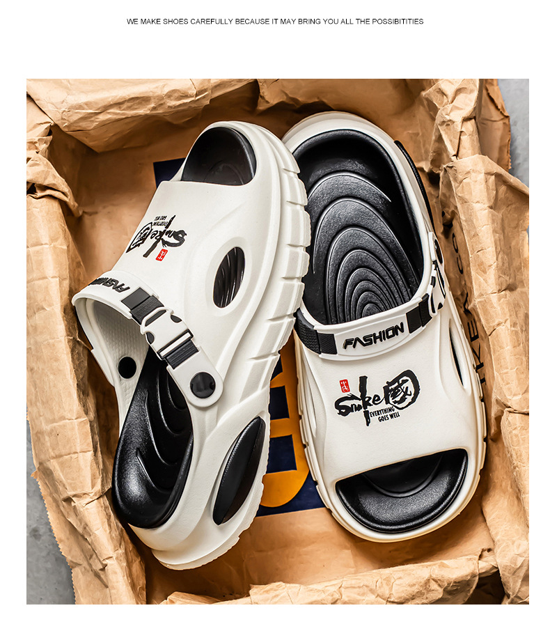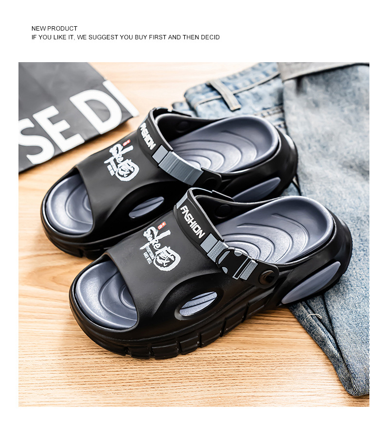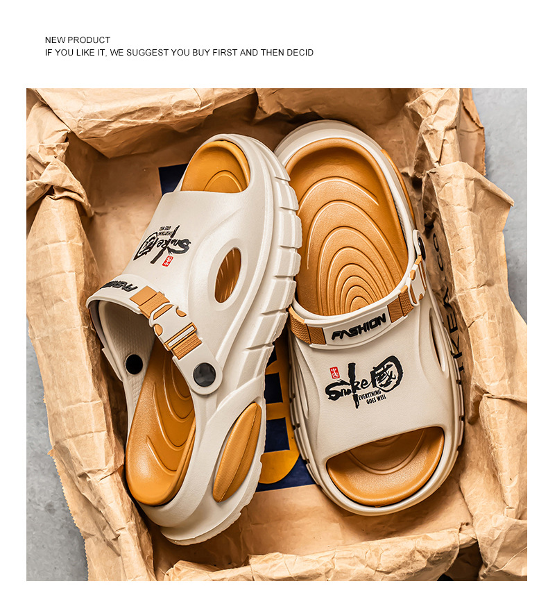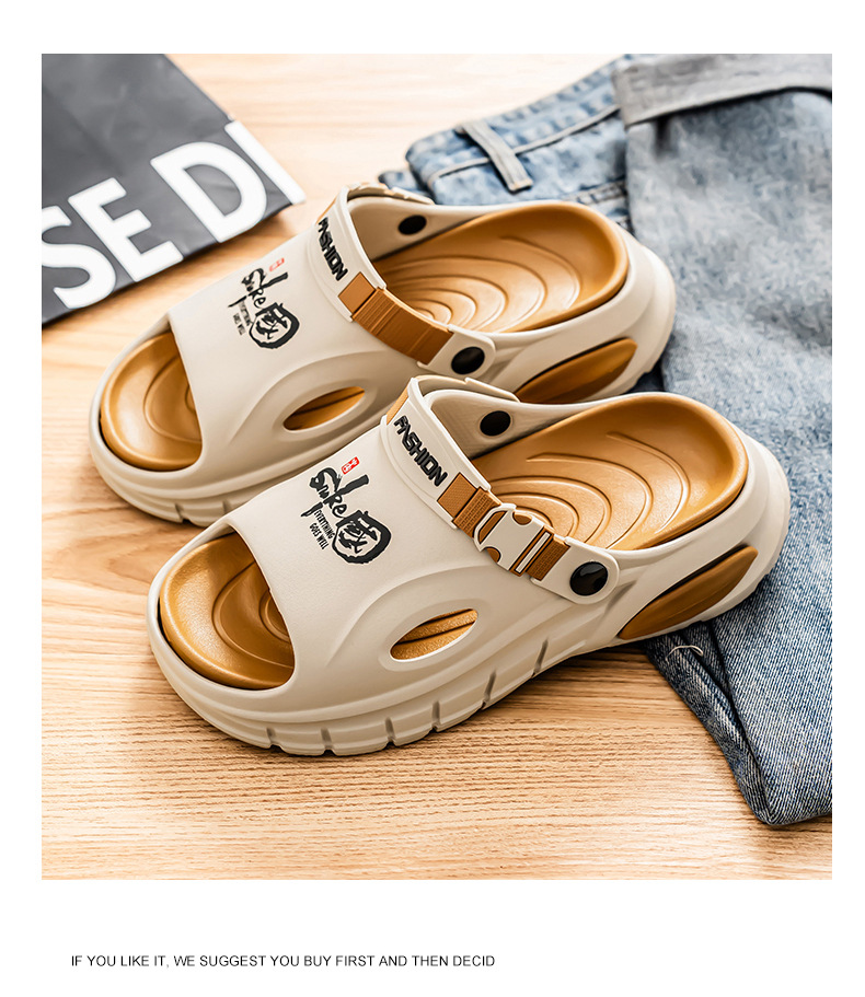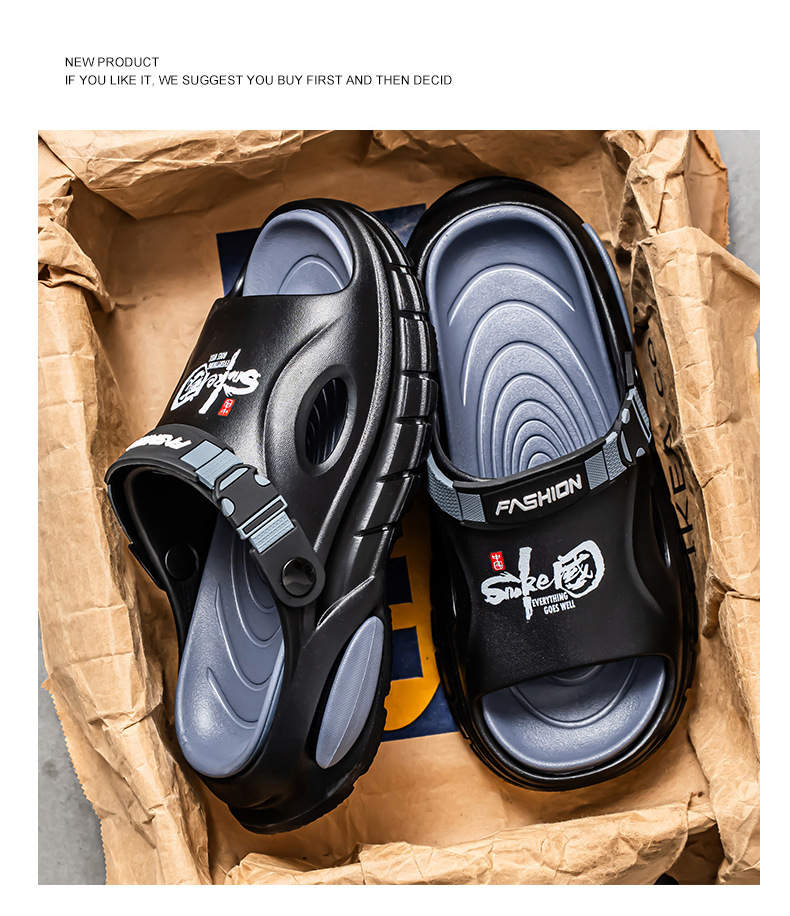 En nombre de las sandalias y pantuflas para hombres y mujeres, los estudiantes de verano EVA pisando mierda, suelas gruesas, uso externo, conducir sandalias y pantuflas transfronterizas