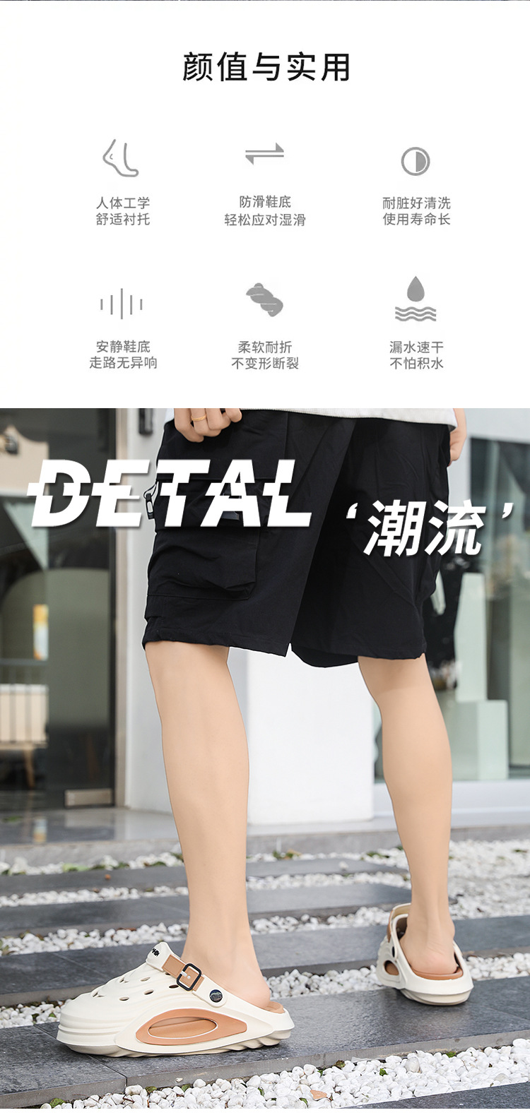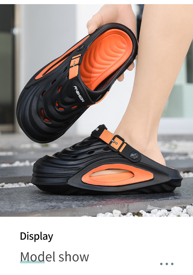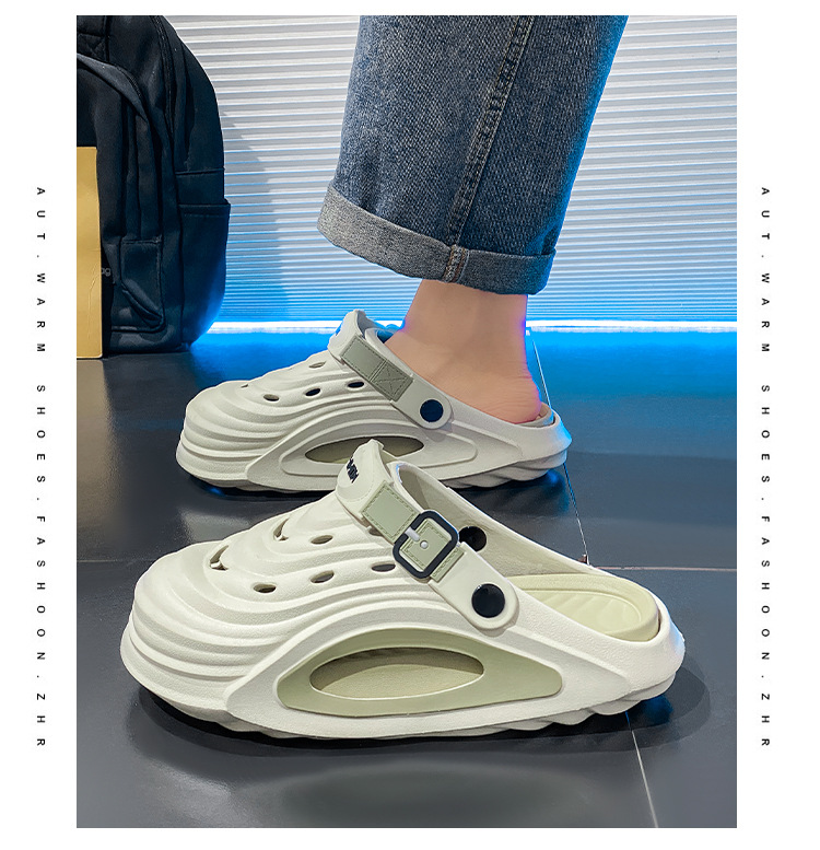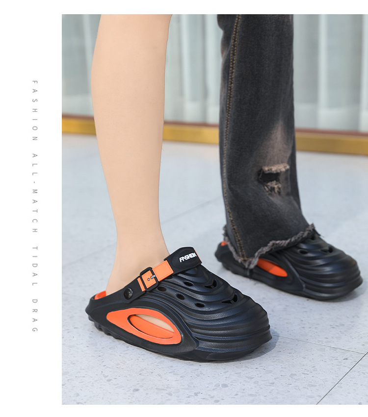 Zapatos con agujeros para mujer de verano fondo de bizcocho grueso de dibujos animados antideslizante y desodorante desmontable todo-fósforo casual Baotou medias pantuflas