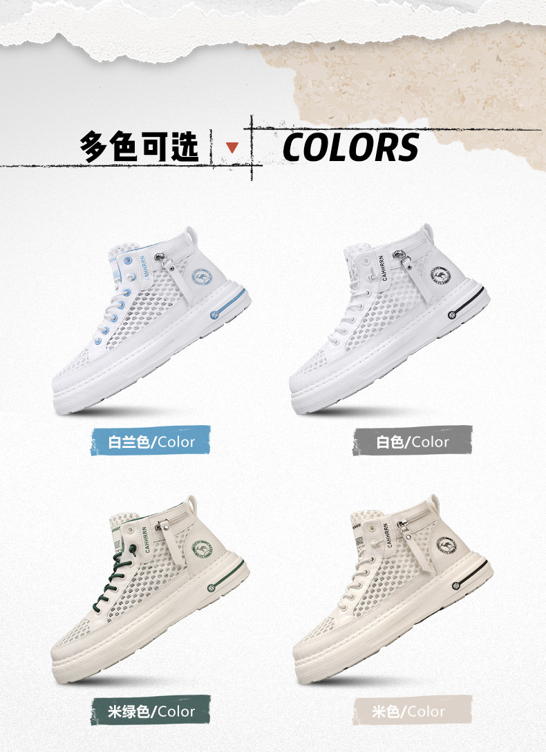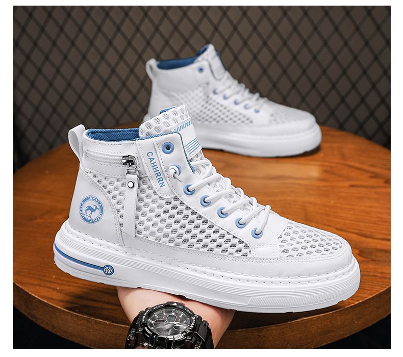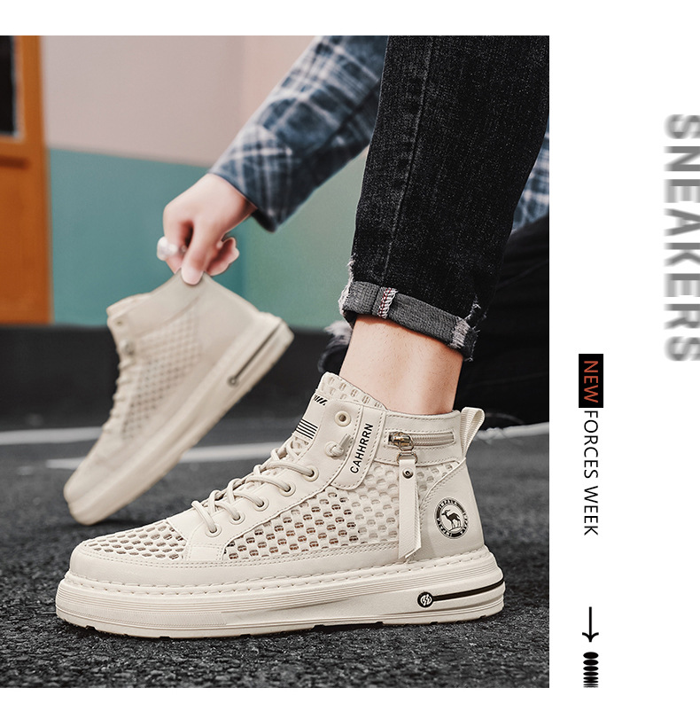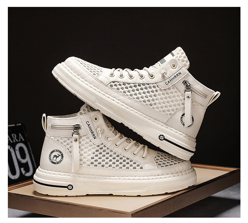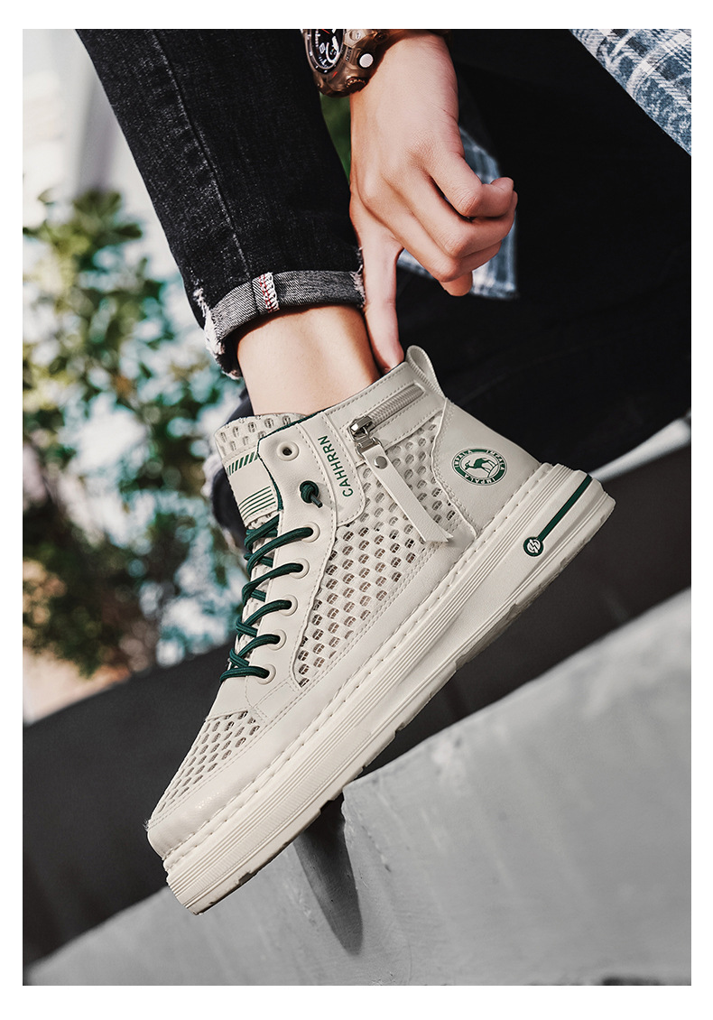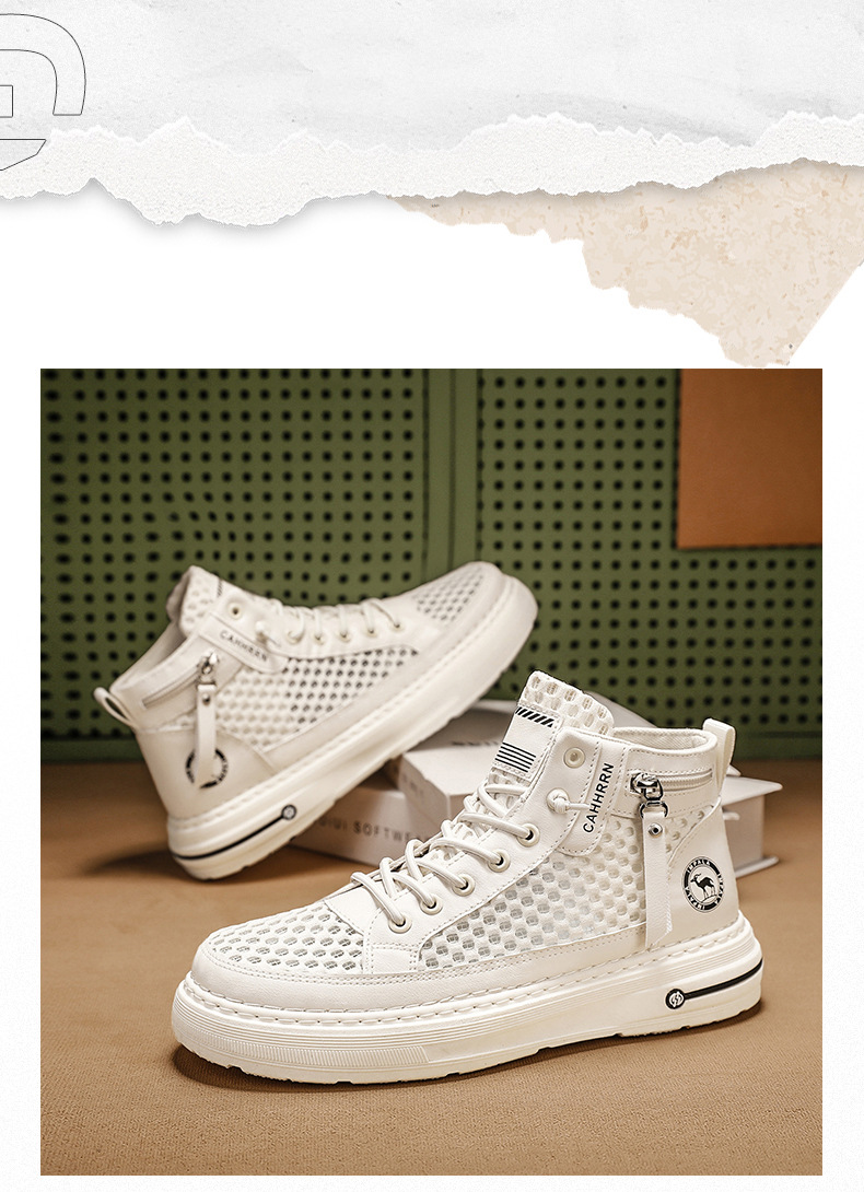 Zapatillas altas para hombre 2025 verano malla hueca para hombre zapatos transpirables de malla casual zapatos de moda estudiantes adolescentes