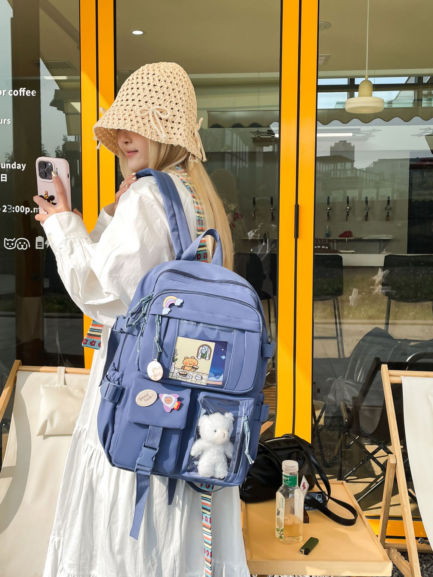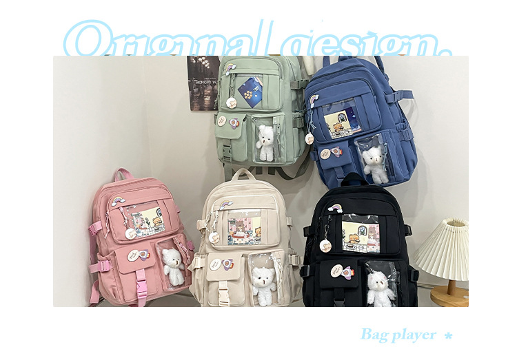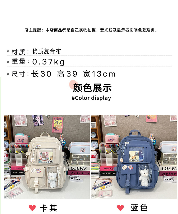 | Colores | Paquete único caque,Paquete único azul,Bolso único rosa,Paquete único verde,Caqui con colgante,Azul con colgante,Rosa con colgante,Verde con colgante |