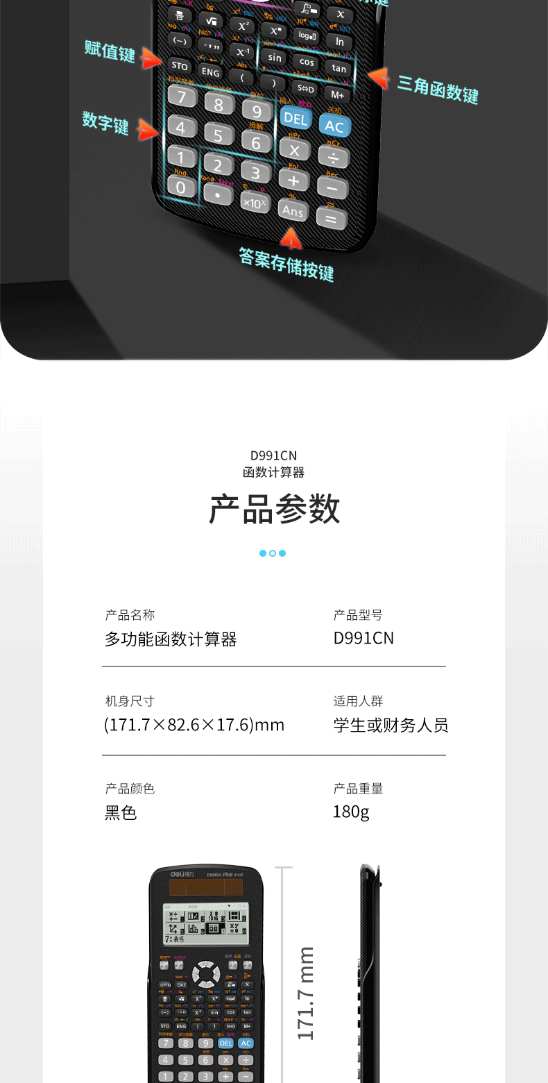 Calculadora de poder D991CN versión china del examen de posgrado de la escuela secundaria, calculadora de funciones científicas multifuncionales para estudiantes