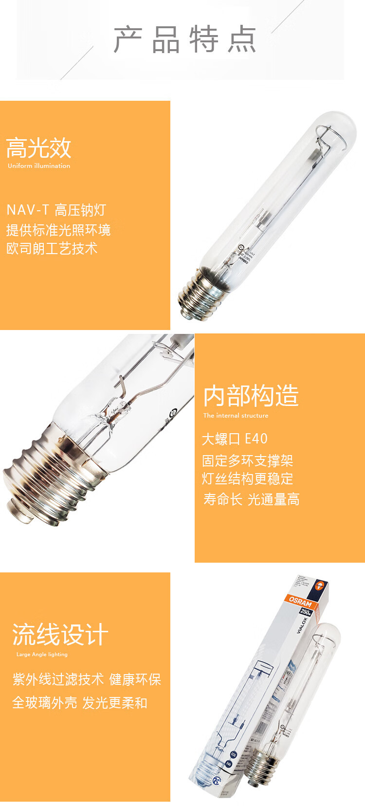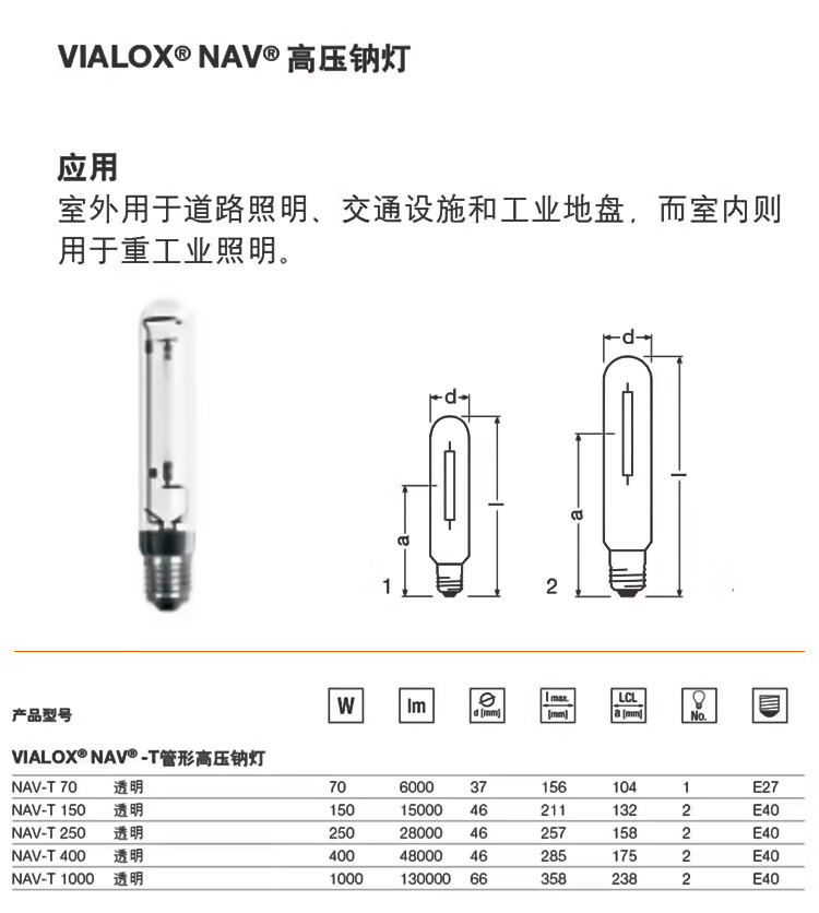 OSRAM (OSRAM) Lámpara de sodio de alta presión tipo tubo NAV T lámpara de halogeno metálico lámpara de lámpara de lámpara