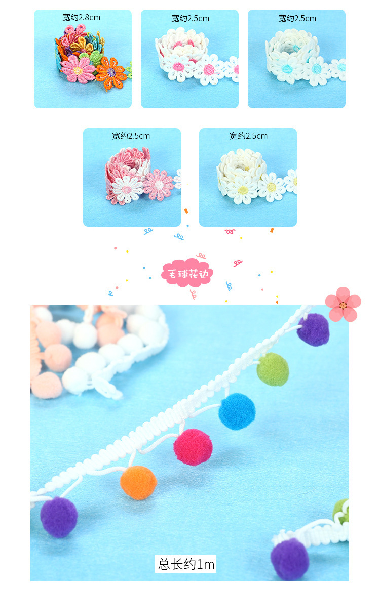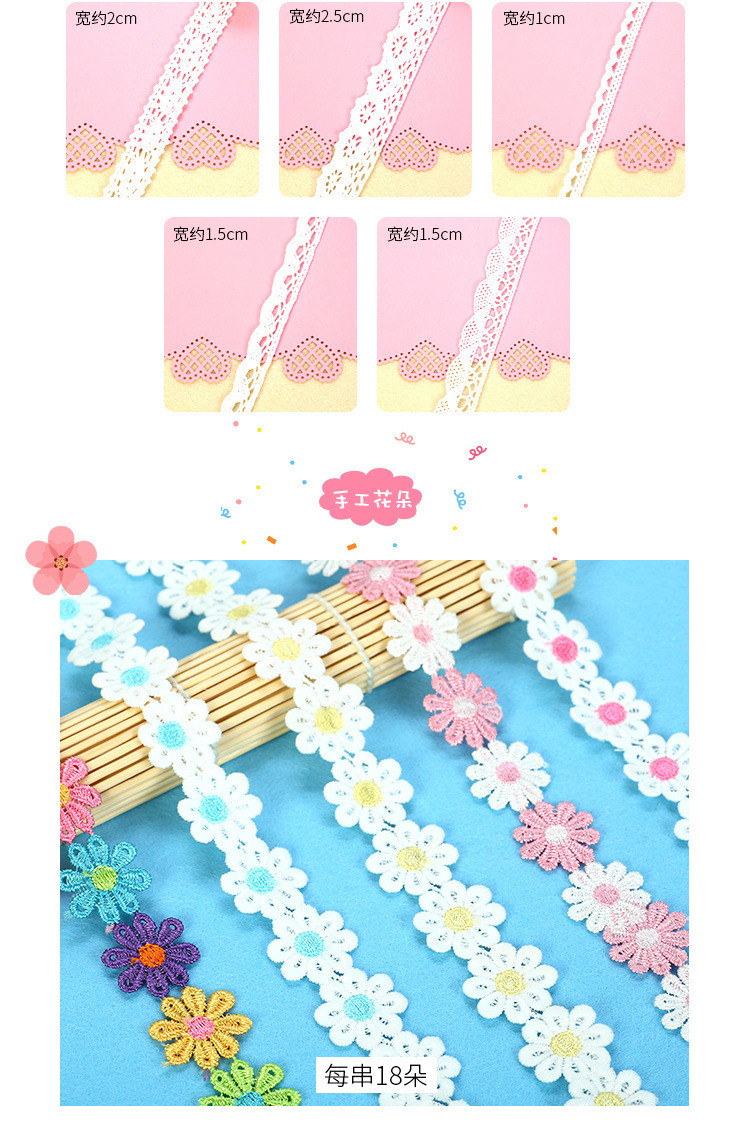 | Colores | Encaje [Un ancho de aproximadamente 2,5 cm] La longitud total es de aproximadamente 2 metros,Encaje [estilo B de aproximadamente 2,0 cm de ancho] longitud total de aproximadamente 2 metros,Encaje [estilo C de aproximadamente 1,5 cm de ancho] longitud total de aproximadamente 2 metros,Encaje [estilo D de aproximadamente 1,5 cm de ancho] longitud total de aproximadamente 2 metros,Encaje [estilo E ancho de aproximadamente 1.0cm] longitud total de aproximadamente 2 metros,La longitud total del encaje/color de la bola de piel es de aproximadamente 1 metro,Encaje de bola de piel/blanco La longitud total es de aproximadamente 1 metro,Encaje de bola de piel/rosa longitud total de aproximadamente 1 metro,Flores de colores hechas a mano [flores pequeñas de aproximadamente 2,5 cm] 18 flores por cadena,Flores blancas rosadas hechas a mano [flores pequeñas de aproximadamente 2,5 cm] 18 flores por cadena,Flores amarillas hechas a mano [flores pequeñas de aproximadamente 2,5 cm] 18 flores por cadena,Flores azules hechas a mano [flores pequeñas de aproximadamente 2,5 cm] 18 flores por cadena,Flores rosadas hechas a mano [flores pequeñas de aproximadamente 2,5 cm] 18 flores por cadena,Sombrero de paja grande de encaje [diámetro exterior 33CM],Mini sombrero de paja [diámetro exterior 13CM],Sombrero de paja mediano [diámetro exterior 20CM] |