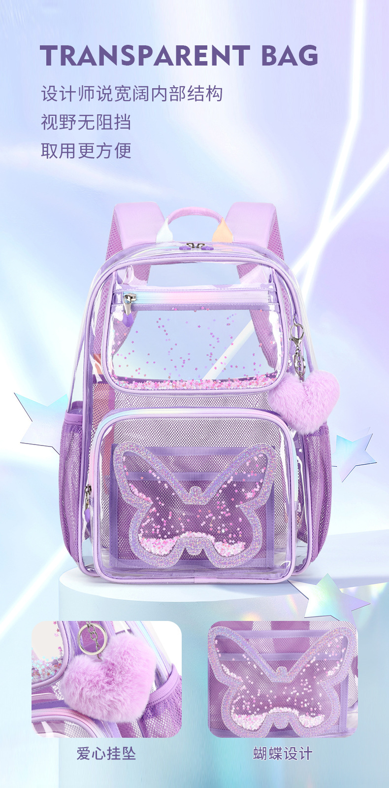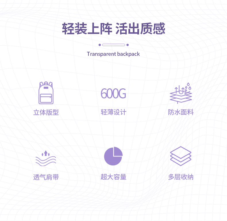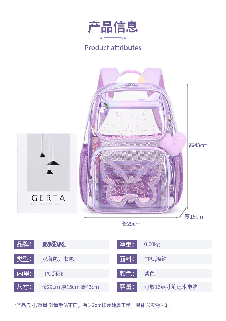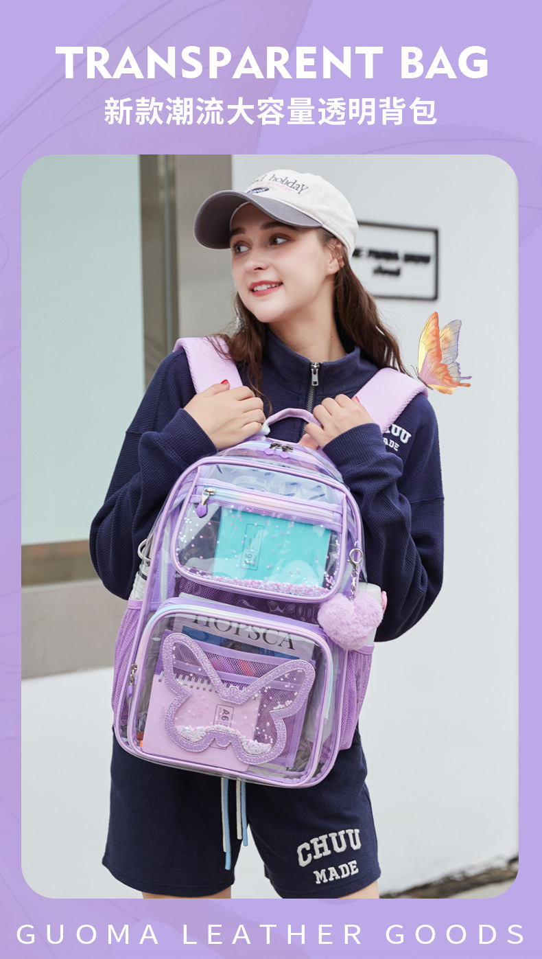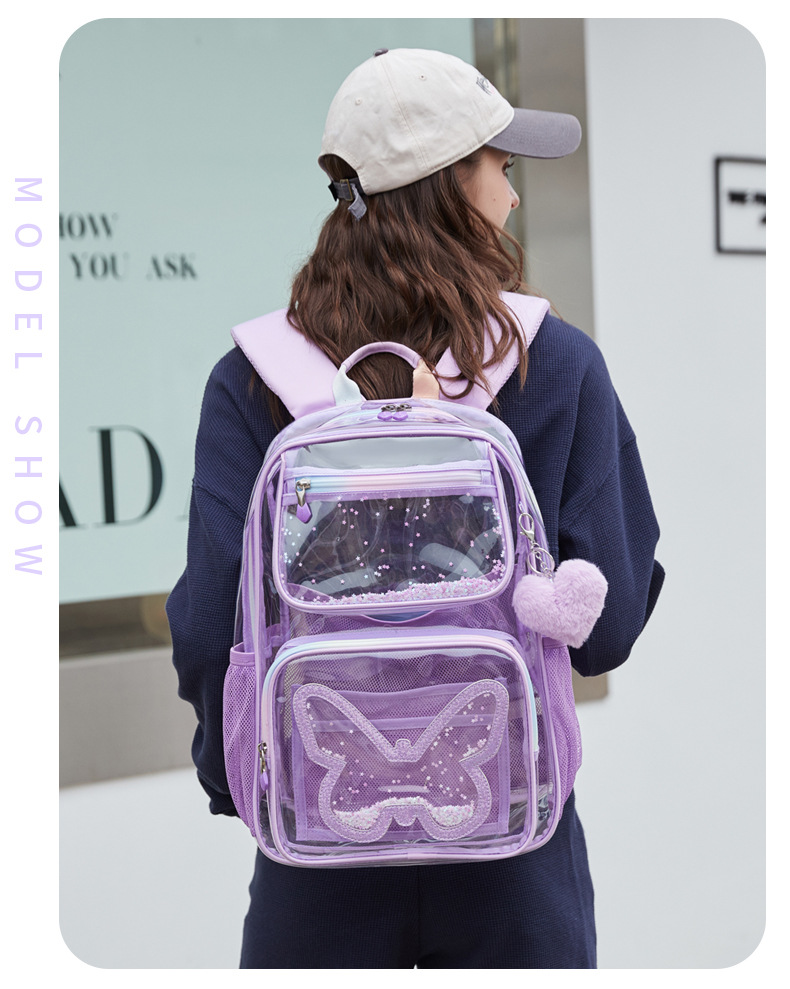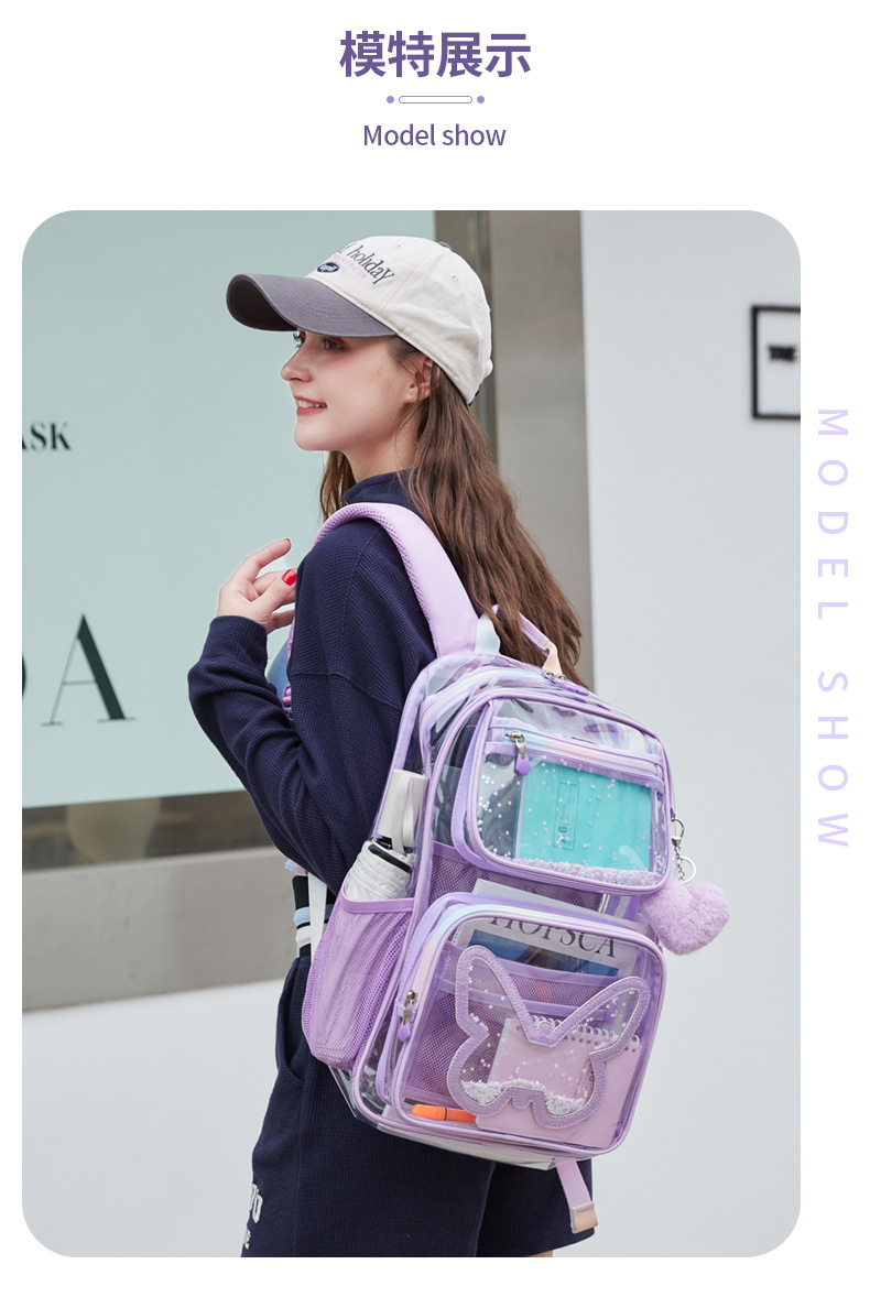 Mochila transparente para niñas de secundaria, mochila ligera de gran capacidad, mochila sencilla multifuncional, impermeable y ultraligera