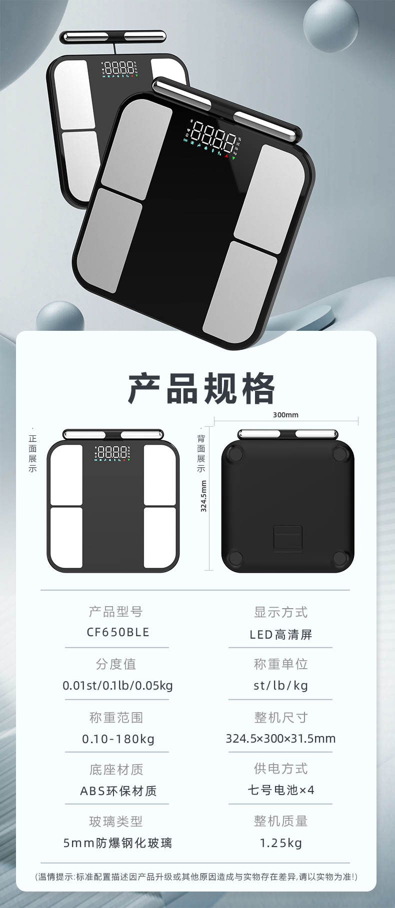 | Colores | Negro-doble frecuencia ocho electrodos-batería Bluetooth CF650BLE |