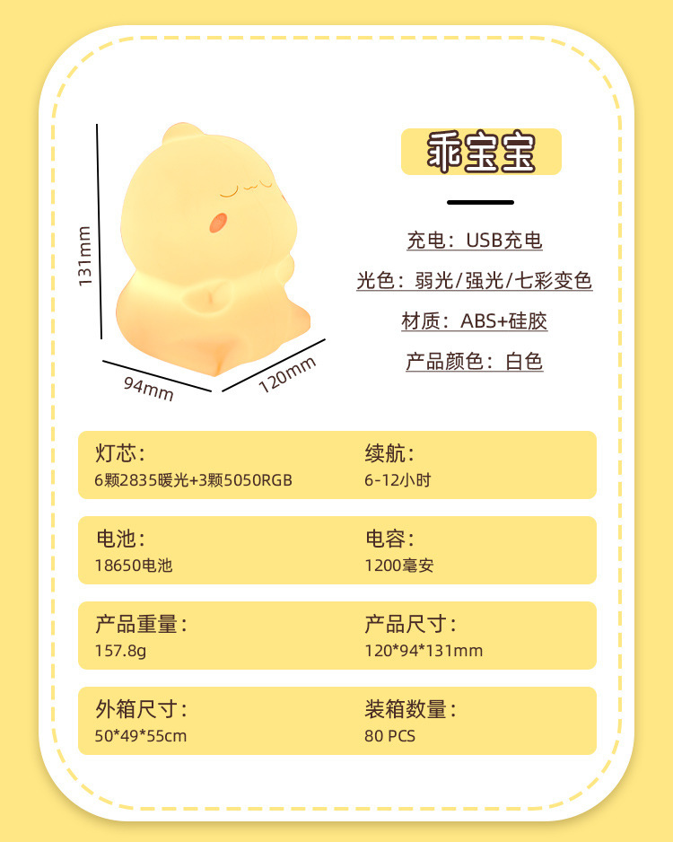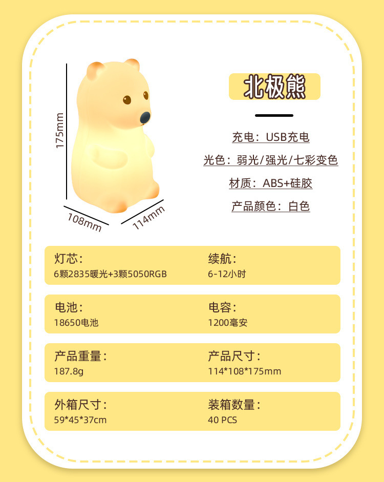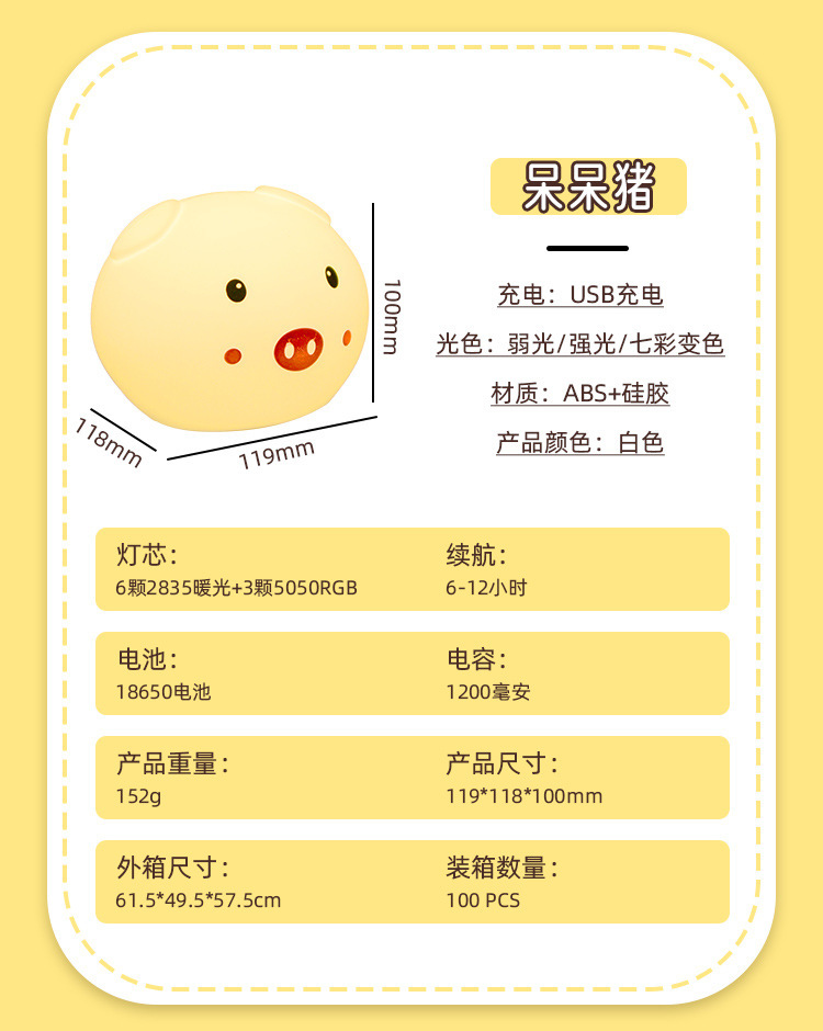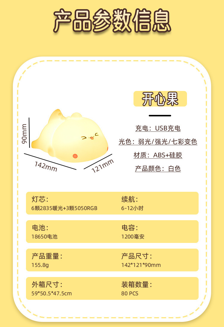 | Colores de luz | Pequeño Hanhan,Pato tonto,cerdo roncando,Oso,Gato lindo,Dragón orgulloso,Conejo de orejas largas,An Yi Tu (Conejo An Yi),Perro feliz,Dragón,Pequeña ballena,Oso polar |