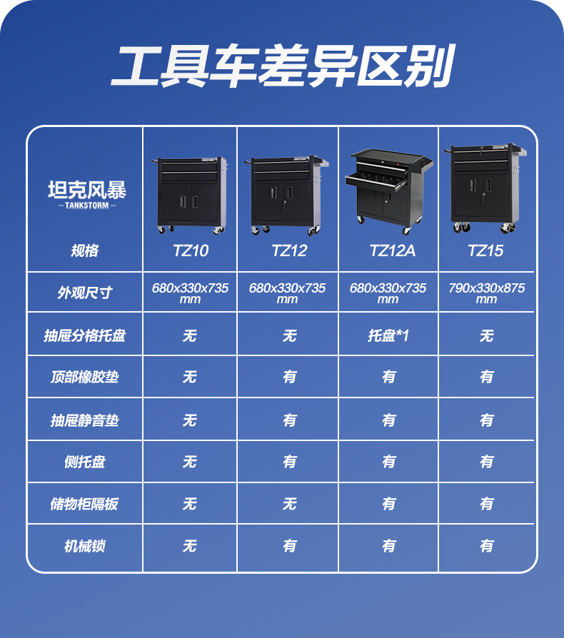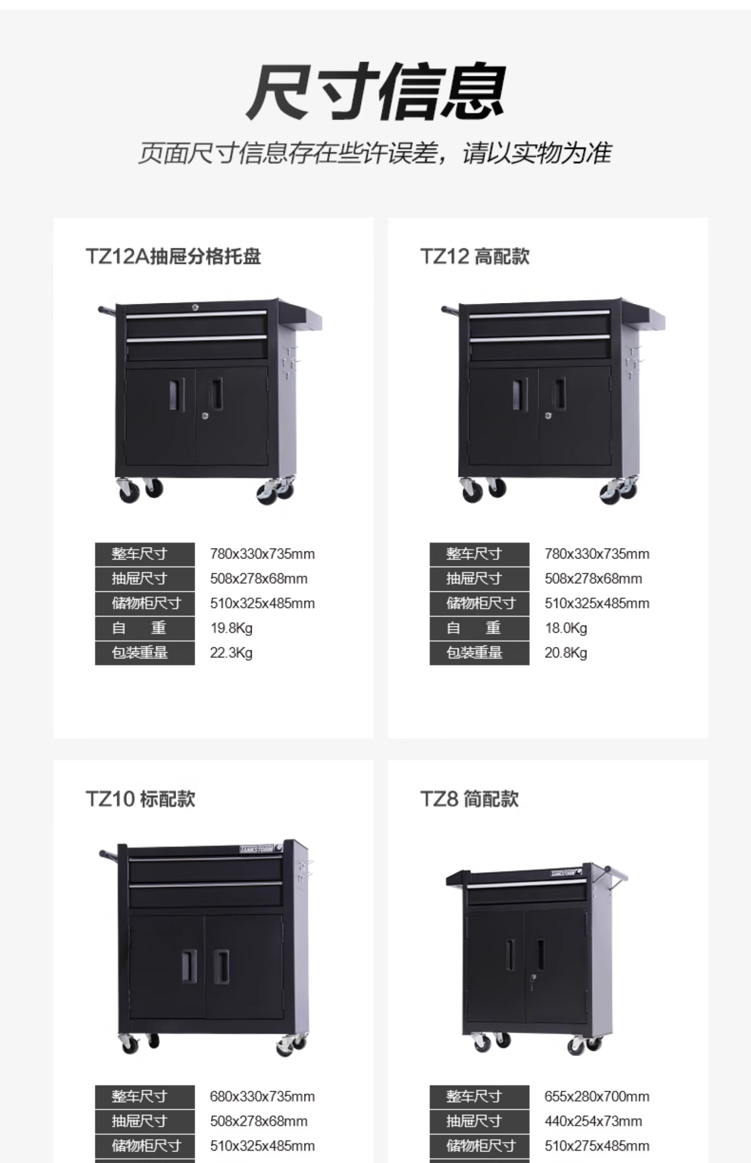 | Modelo | TZ8 negro [cerradura de la puerta del gabinete de partición de una sola bomba],TZ10 negro [dos ruedas silenciadas de doble freno],TZ10 tres capas colgantes laterales,TZ12 negro [cerradura de gabinete de rueda silenciosa de doble freno de dos bombeo],TZ12 colgante lateral de tres capas,TZ12 rojo [dos bombas y doble freno bloqueo de gabinete de rueda silenciosa],TZ12 negro y amarillo [dos bombas y doble freno bloqueo de gabinete de rueda silenciosa],TZ12 negro rojo caja de plástico,TZ201 negro cinco cajones,TZ220 negro ocho cajones,TZ12A negro [bandeja de cajón con cerradura de cajón con cerradura de puerta],Paquete de tatuaje negro TZ10,Paquete de tatuaje negro TZ12,TZ12W negro [estilo tatuaje],TZ15 negro [cerradura de gabinete de partición alta de doble bombeo],TZ15 colgante lateral de tres capas,Paquete negro TZ10 A,Paquete negro TZ12 A,Paquete negro TZ15 A,TZ64H negro [cuatro bombeados engrosados industriales],TZ64H tres capas colgantes laterales,TZ393 Rojo [Aumento industrial, aumento y tres sorteos],TZ12 juego de 123 piezas negro de doble bombeo,X-73 negro [gabinete insignia de tres sorteos con doble puerta] |