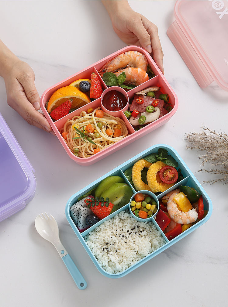 | Especificaciones | Caja de almuerzo monocapa de cinco compartimentos púrpura, caja de almuerzo monocapa de cinco compartimentos rosa, caja de almuerzo monocapa de cinco compartimentos azules, caja de almuerzo monocapa de cinco compartimentos púrpura + taza de agua, caja de almuerzo monocapa de cinco compartimentos rosa + taza de agua, caja de almuerzo monocapa de cinco compartimentos azules + taza de agua |