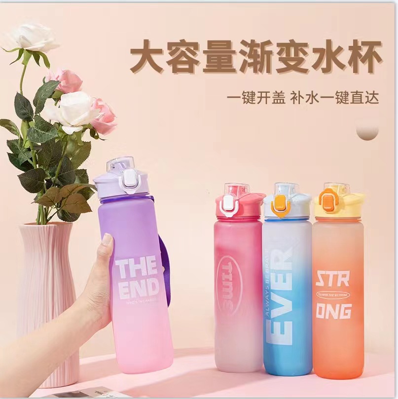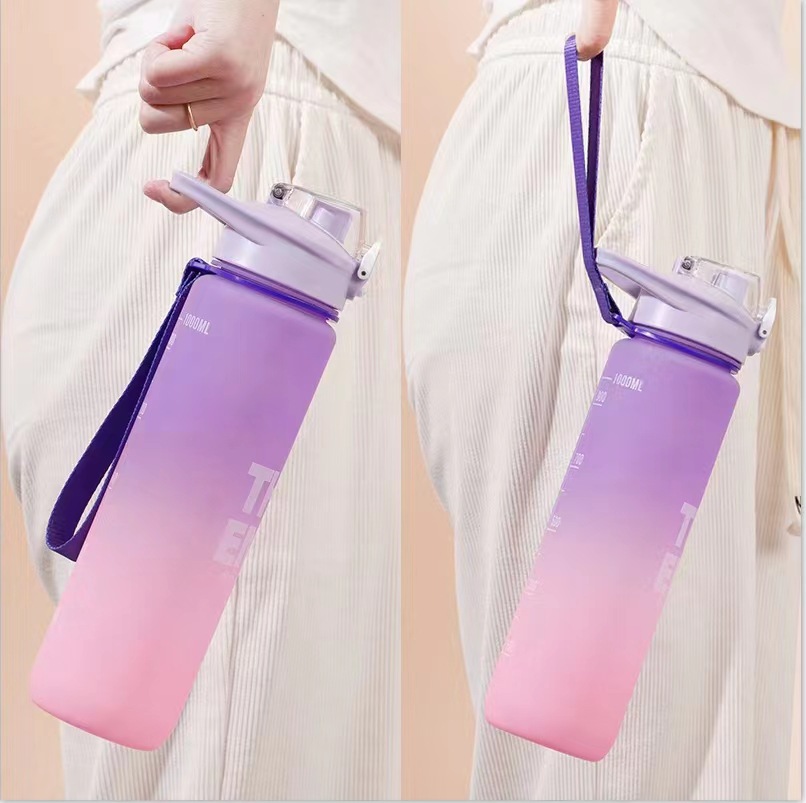 Estilo coreano 1000ml gradiente de color espacio de la Copa de fitness deportes hervidor de plástico transfronterizo rebotando taza portátil con escala