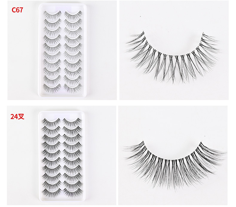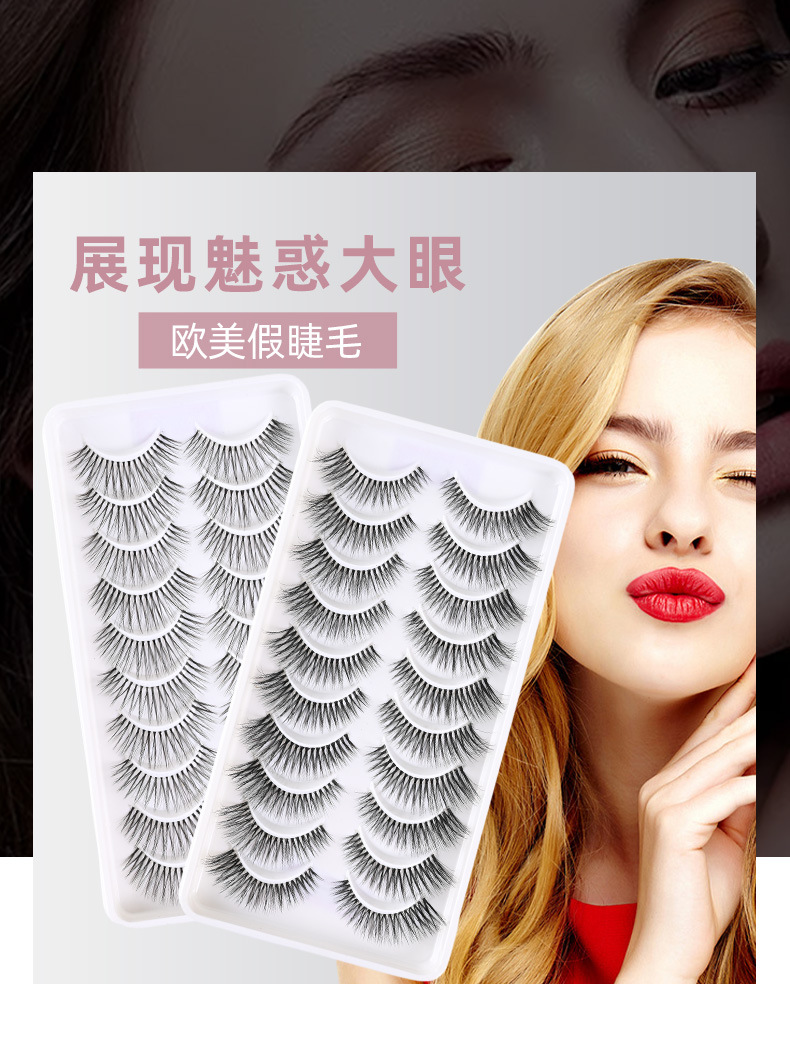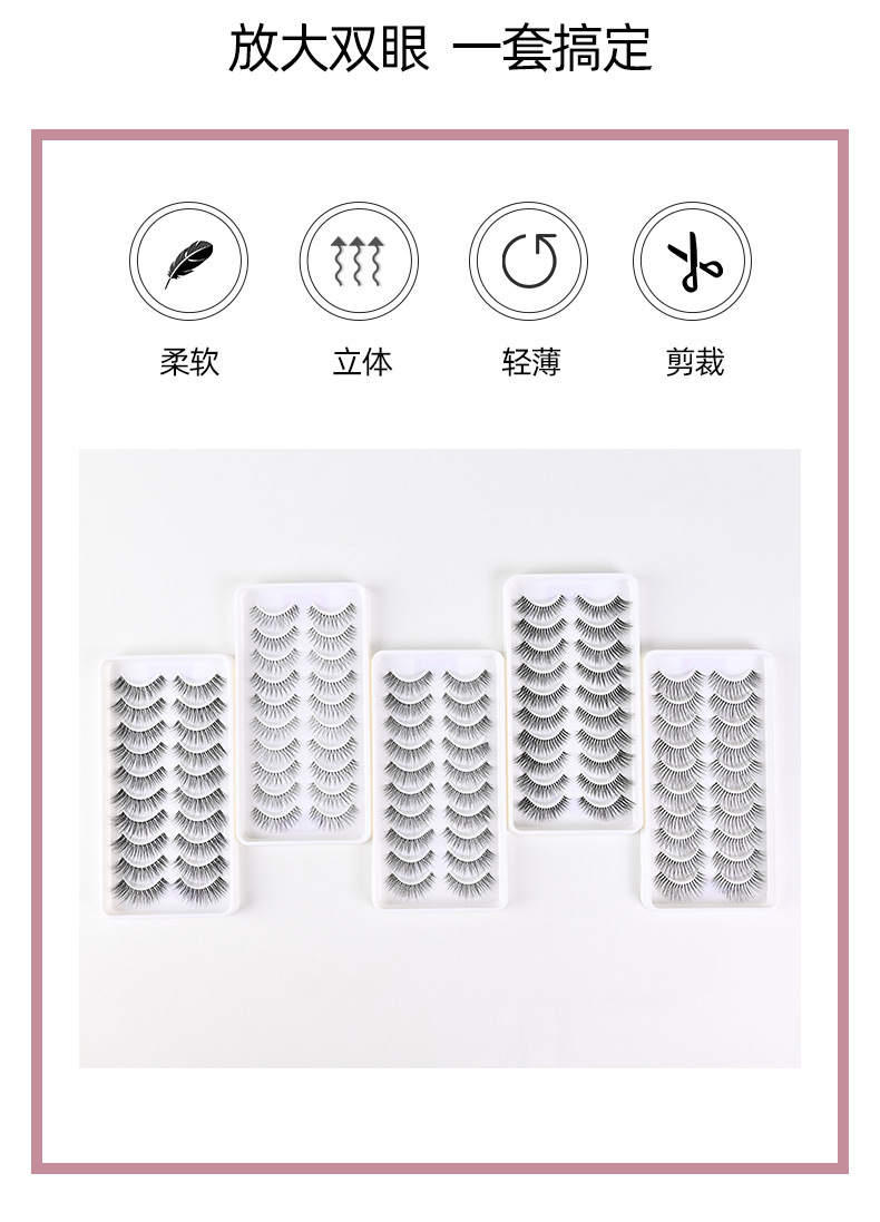 Pestañas Postizas Negras de Tallo Duro para Maquillaje de Escenario, 10 Pares, Estilo Natural y Grueso, Pestañas de Tira Completa, Venta al por Mayor, Estilo de Escenario