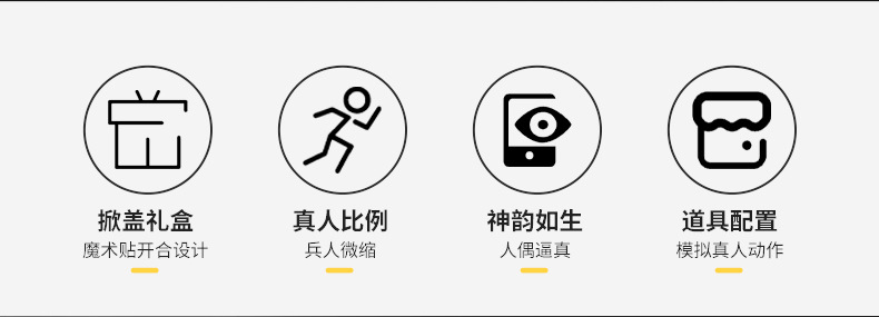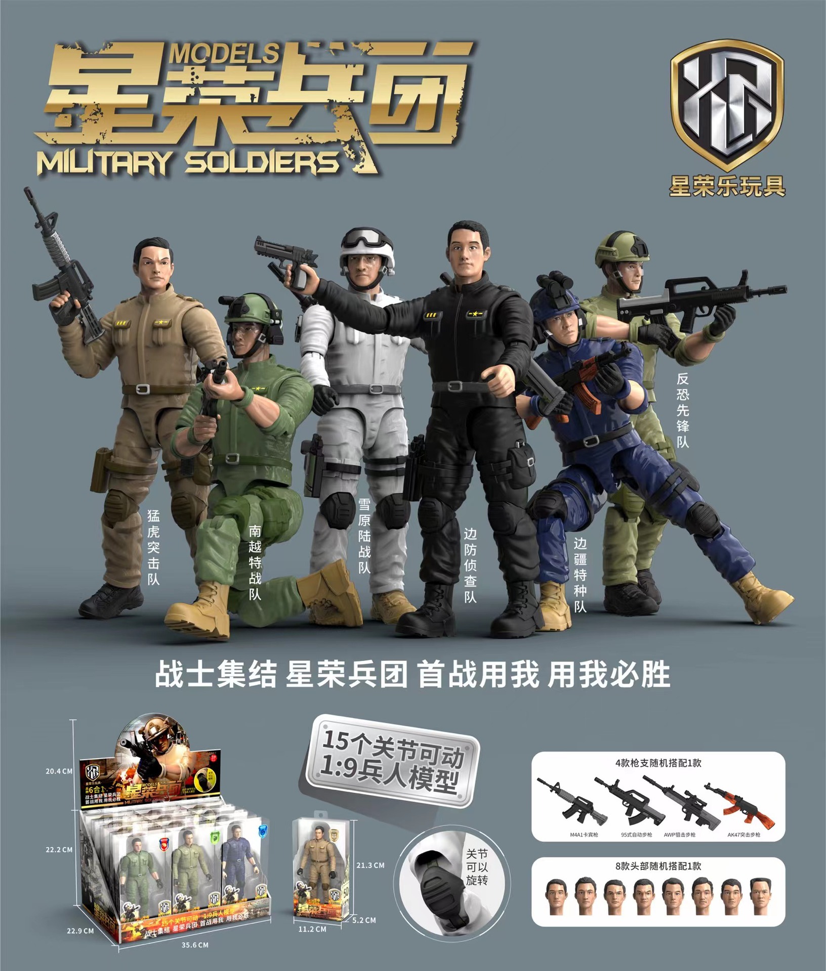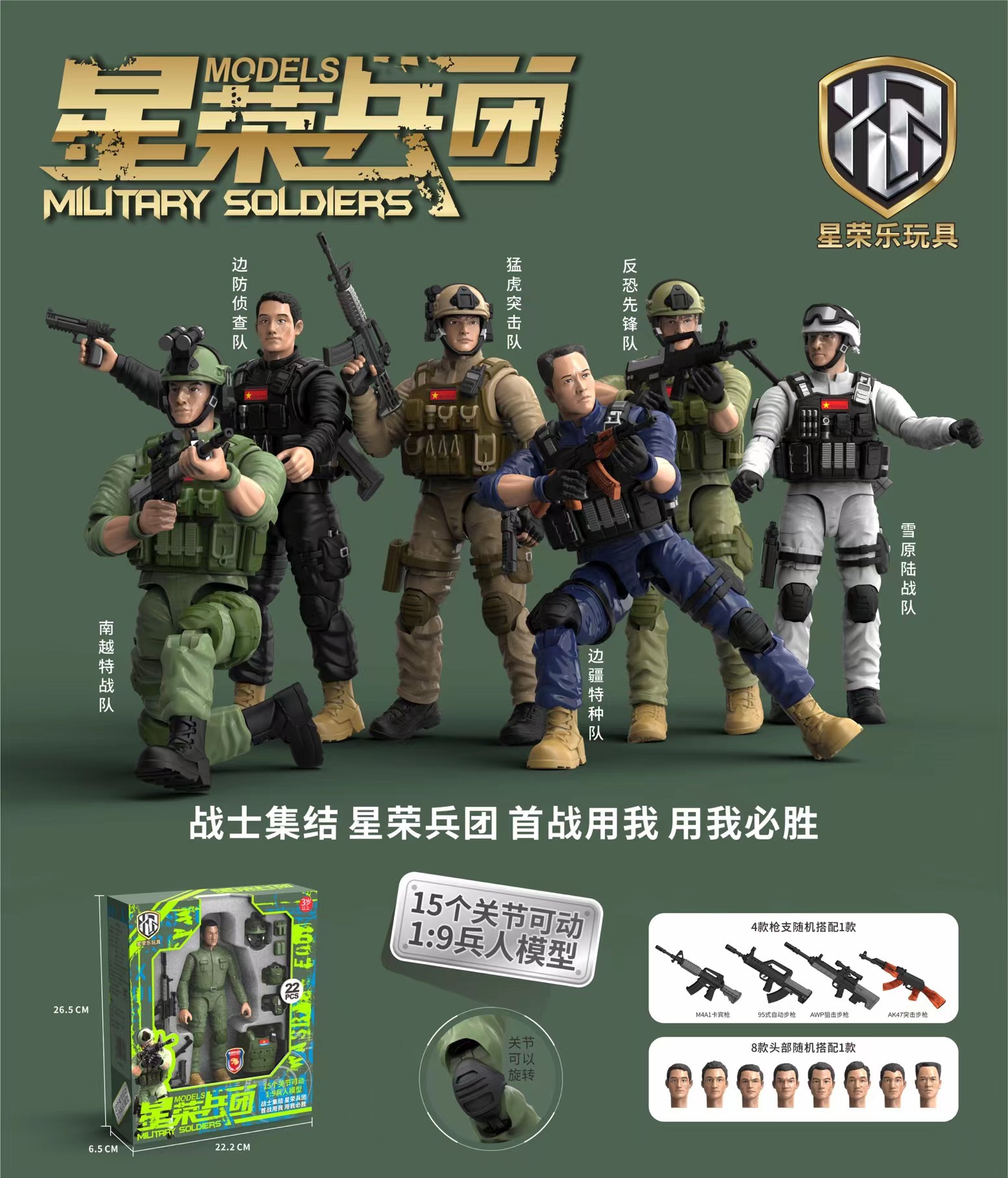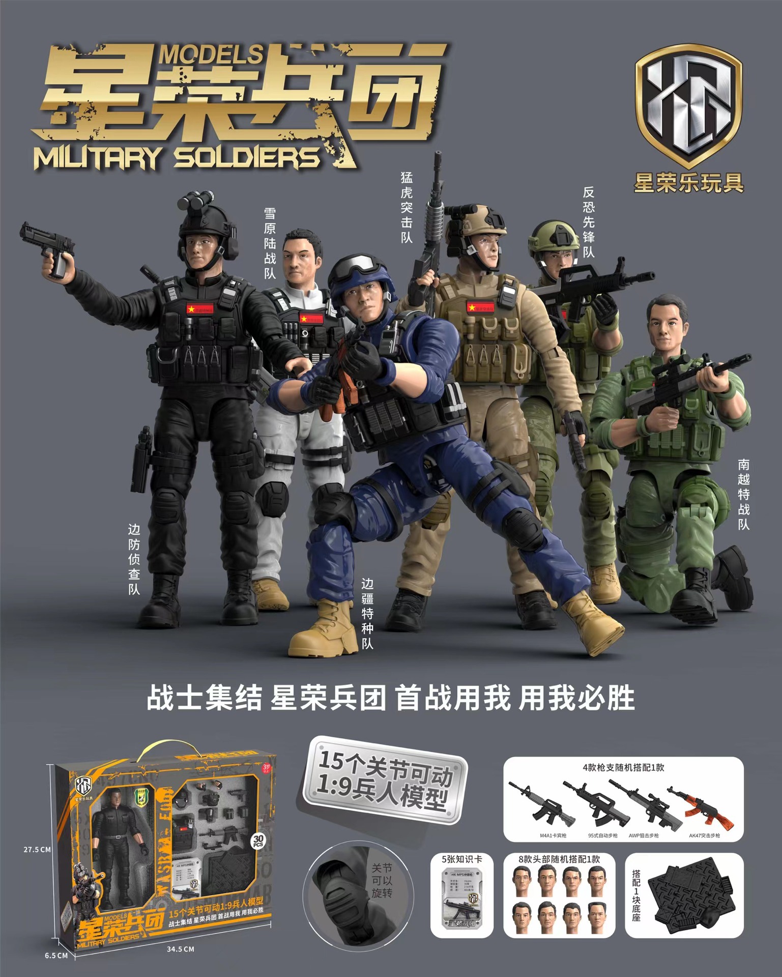 | Modelo de Soldados | El cuerpo del producto está hecho de nuevo material ABS, la cabeza y los accesorios de las extremidades están hechos de material sólido de PVC respetuoso con el medio ambiente, y la modelado de la figura adopta un recubrimiento de transferencia de agua respetuoso con el medio ambiente para no perder la pintura. |