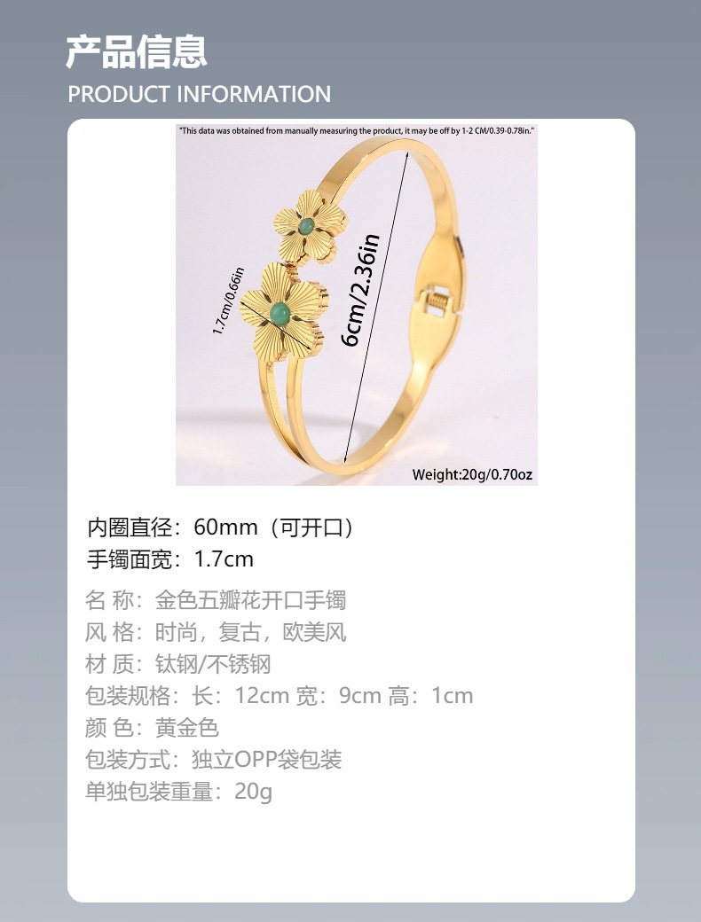 | Color | Brazalete abierto de cinco pétalos dorados |