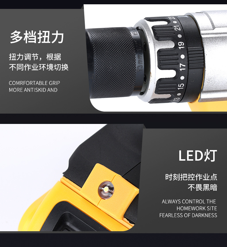 | Herramientas eléctricas | 21v transfronterizo multifuncional taladro eléctrico de litio inalámbrico de alta potencia taladro eléctrico de comercio exterior doméstico de tres funciones taladro de impacto inalámbrico taladro de pistola de doble velocidad taladro eléctrico recargable conjunto de tornillo eléctrico portátil |