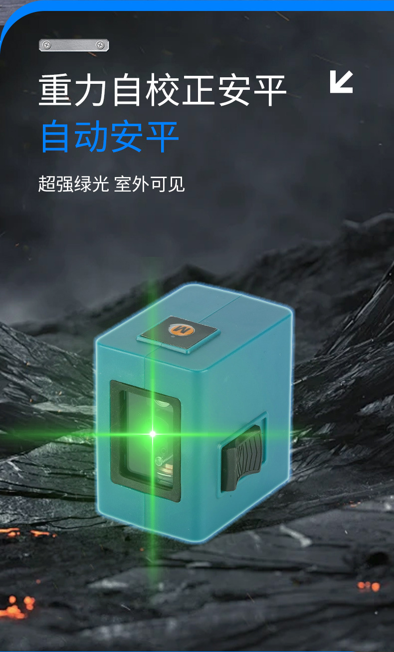 | Herramientas de batería de litio | Medidor de nivel láser multifuncional transfronterizo de 2 líneas, sitio de construcción doméstico de comercio exterior, pegado a la pared, nivelación automática de alta precisión, nivel de luz verde, nivel automático portátil para exteriores |