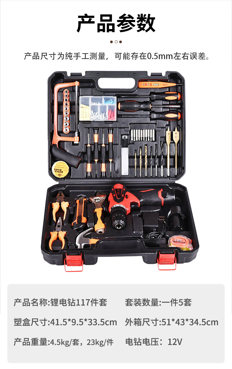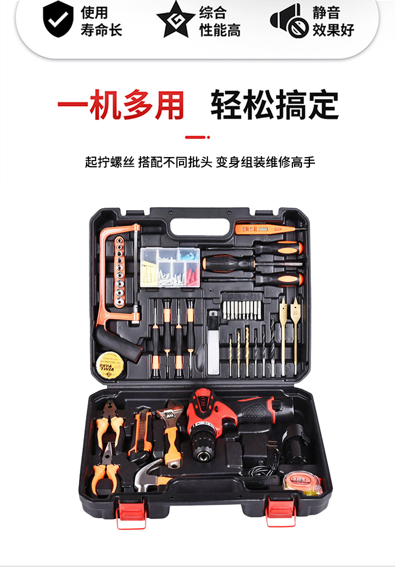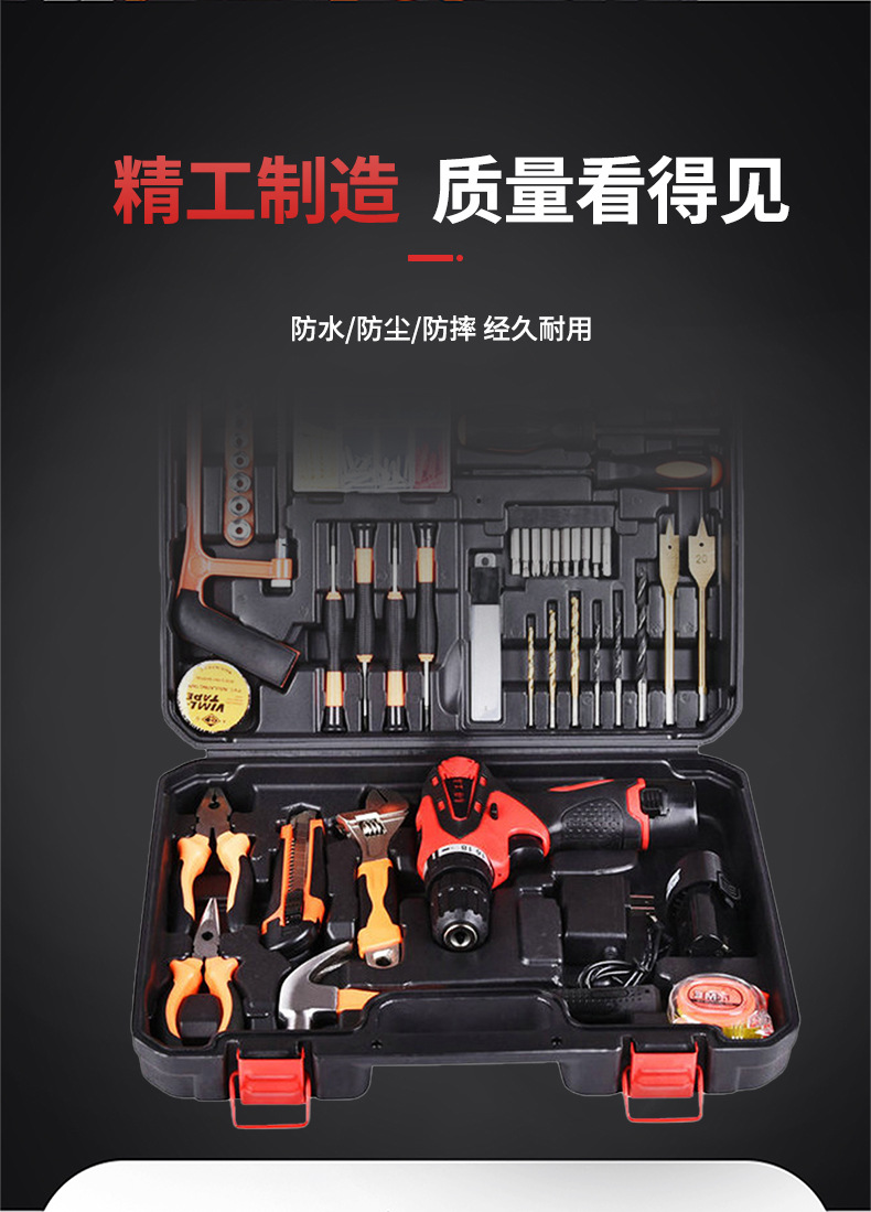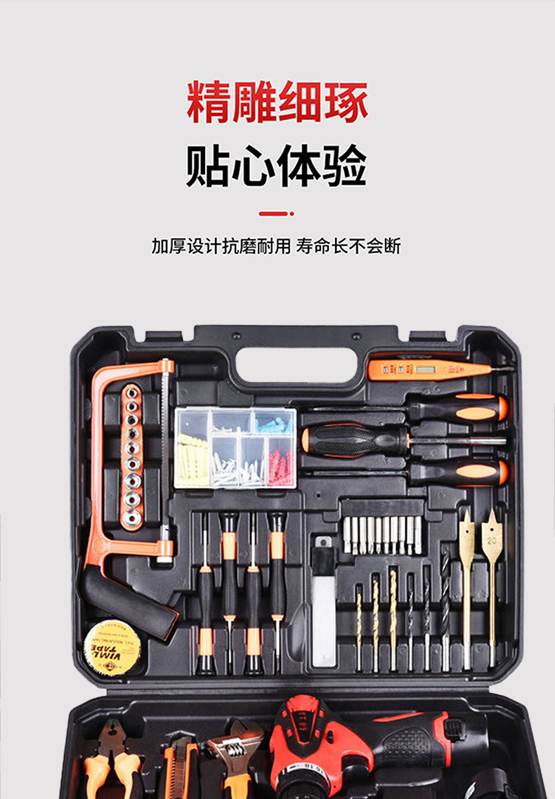 Fábrica al por mayor hardware doméstico recargable taladro eléctrico de litio electricista reparación destornillador eléctrico Caja de Herramientas taladro eléctrico traje