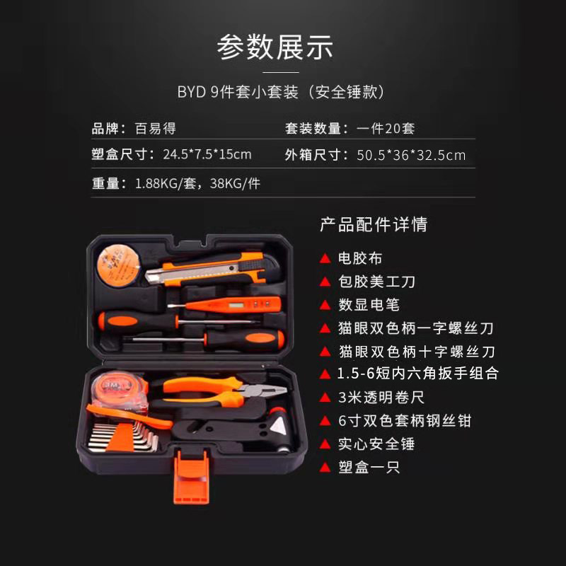 Multifuncional herramientas de hardware del hogar traje martillo de seguridad caja de herramientas del coche herramientas de carpintería caja de herramientas de hardware al por mayor