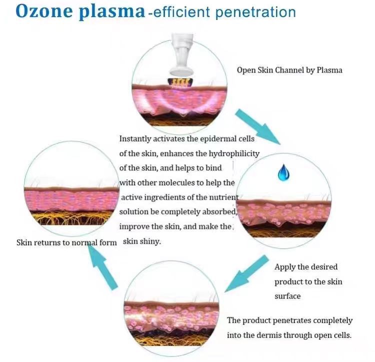 2 - en - 1 instrumento de belleza de plasma para la impresión de agujeros de acné de manchas ligeras, desvanecimiento de rayas finas, dispositivo antienvejecimiento superconductor no invasivo de ozono