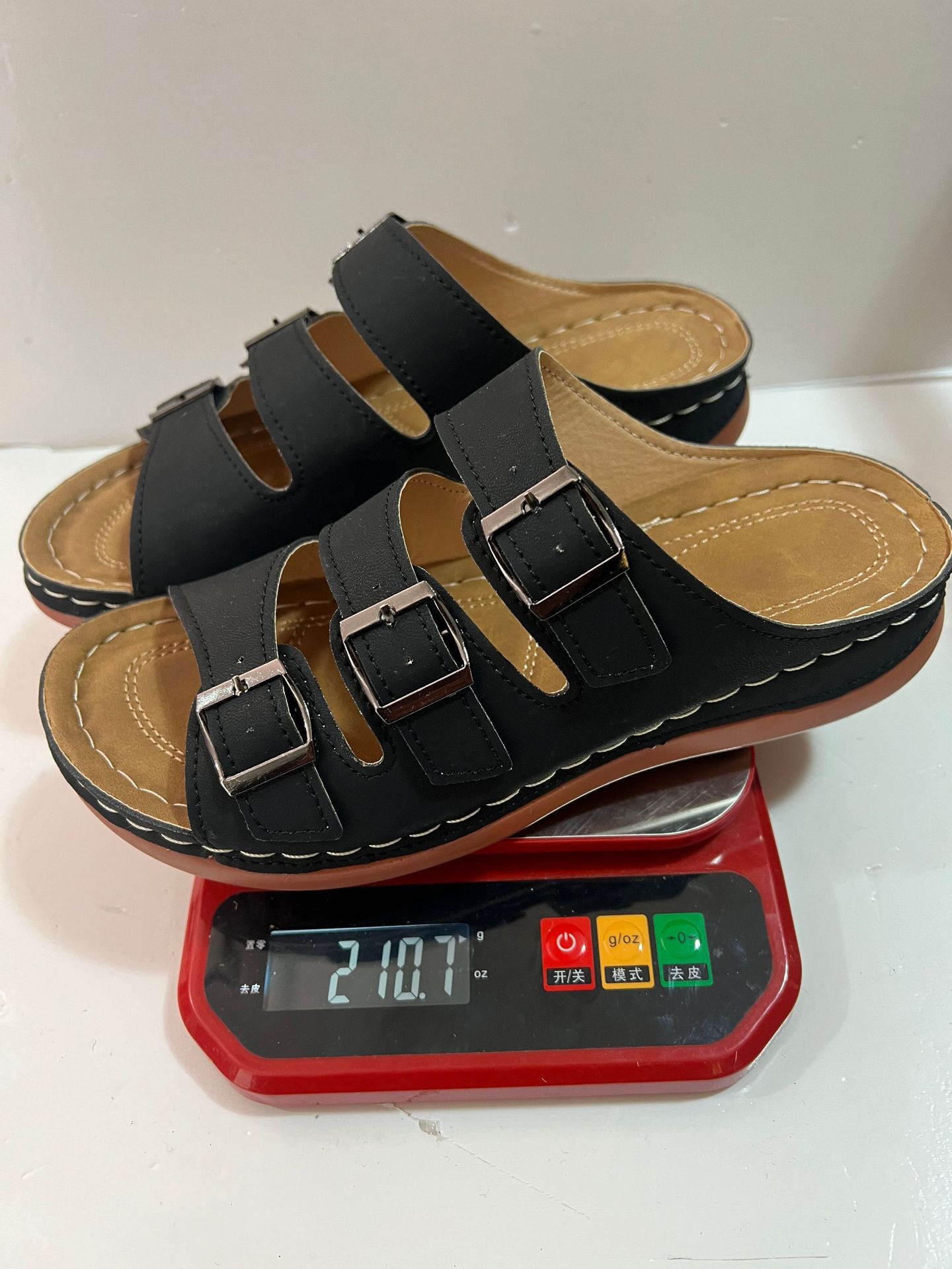 950-2 Verano 2025 Amazon nuevo velcro de metal sandalias de mujer tacones casuales zapatillas de tamaño ligero