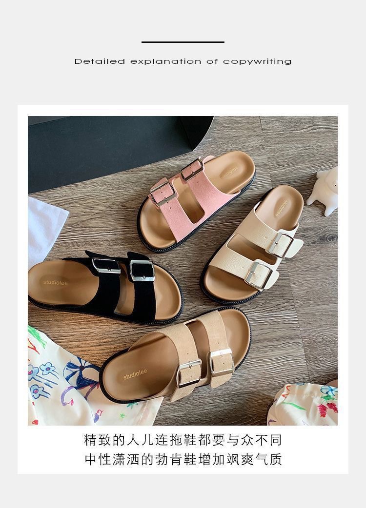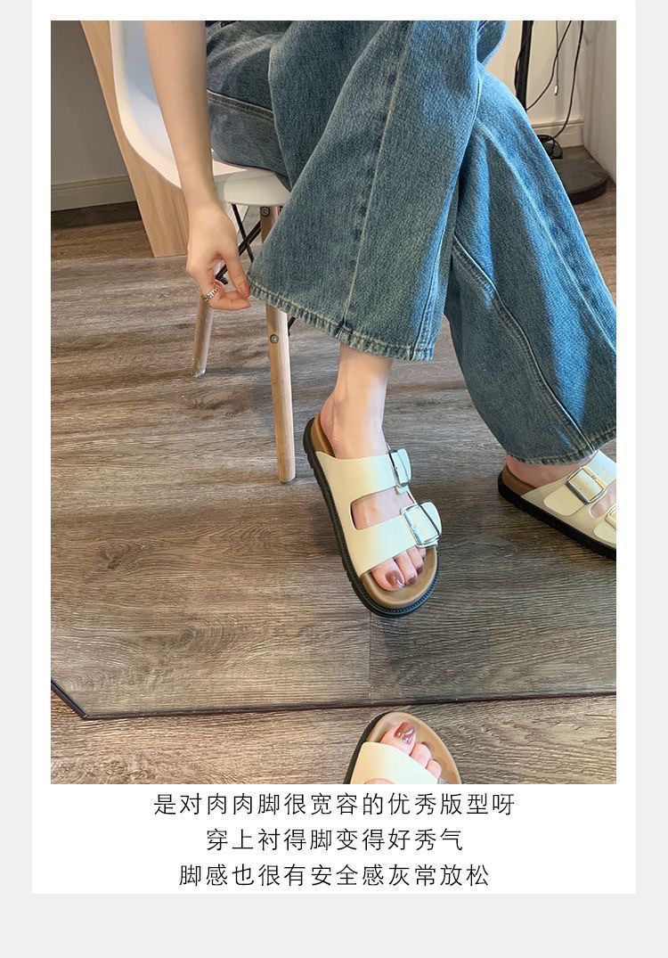 Nuevas sandalias y pantuflas de suela gruesa de Birkener casuales de verano para mujer, hebilla cuadrada de moda, zapatillas de una sola palabra antideslizantes 2024