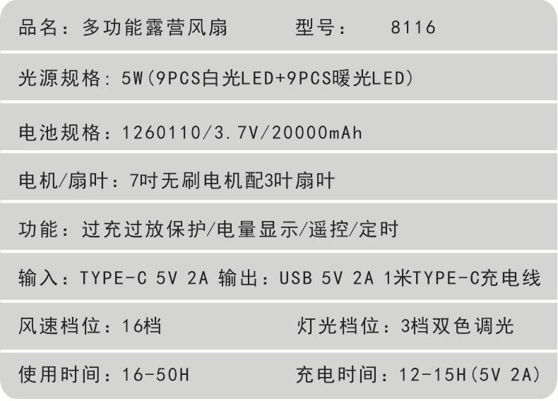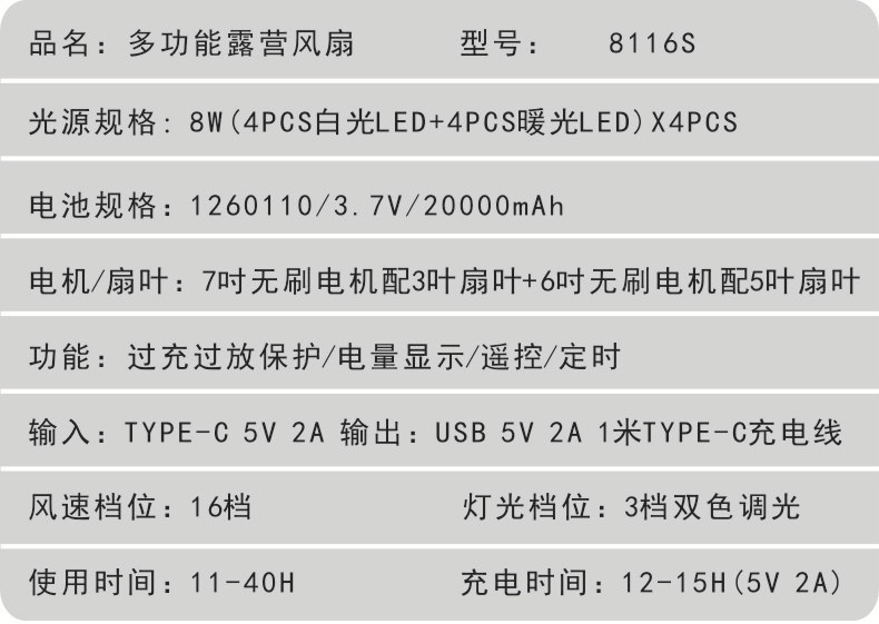 10、充电时间:12-15H(5V 2A)