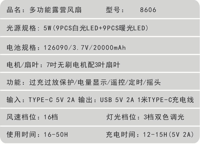 | Categoría de producto | Acampar al aire libre ventilador |