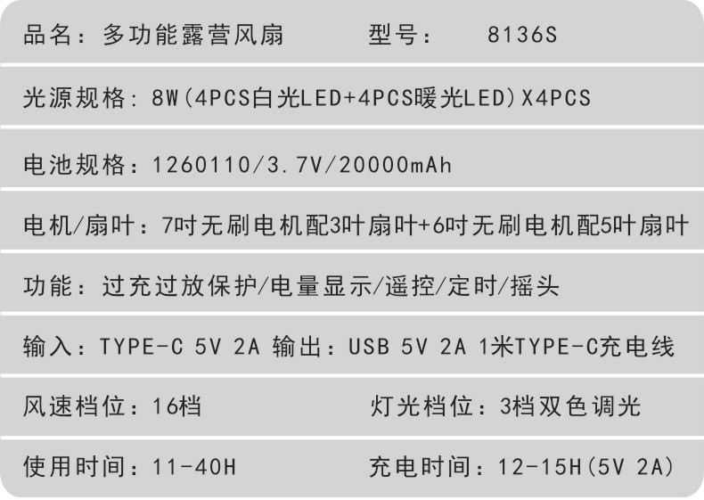 6、输入:TYPE-C 5V-2A