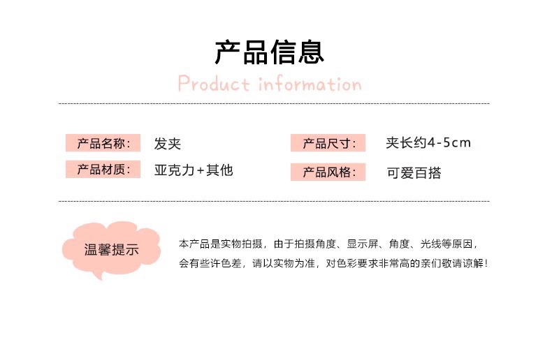 | Colores | 5 # Pinza para el cabello azul rosa para niños (juego de 8)),6 # Horquilla para niños de conejo azul (juego de 14),7 # Pink Little Flower Children's Horquilla (juego de 14 piezas),8 # Horquilla de sandía verde para niños (juego de 14),9 # Horquilla para niños con lazo morado (juego de 14 piezas),10 # Horquilla para niños estrella amarilla (juego de 14),11 # Love Baby Horquilla-Juego de 14 piezas,1 # clip de pico de pato amarillo juego de 5 piezas-resina,2 # pinzas de pico de pato rosa juego de 5 piezas-resina,3 # clip de pico de pato azul juego de 5 piezas-resina,4 # clip de pico de pato morado juego de 5 piezas-resina,5 #5 flores huecas,1 # juego rosa de 12 piezas,2 # Conjunto azul de 12 piezas,3 # juego púrpura de 12 piezas,4 # juego amarillo de 12 piezas,5 # Traje verde de 12 piezas,6 # Juego de 12 piezas de polvo claro,7 # Juego de 12 piezas marrón claro,8 # Juego de 12 piezas de marrón oscuro,1 # conjunto de cinco piezas de flores rosas,6 # Traje verde de cinco piezas,2 # hermoso juego de 5 piezas,3 # delicado juego de 5 piezas,4 # hermoso juego de 5 piezas,5 # hermoso juego de 5 piezas,6 # lindo juego de 5 piezas,7 # Allure juego de 5 piezas,8 # encantador juego de 5 piezas,9 # hermoso juego de 5 piezas,1 # Horquilla de helado,2 # Traje de fruta de diez,3 # lindo juego de diez,4 # Horquilla para niños amarillo y azul (juego de 8 piezas),3 # Horquilla para niños verde amarillo (juego de 8 piezas),2 # Pinza para el cabello para niños rosa púrpura (juego de 8 piezas),1 # Horquilla para niños amarillo-rosa (juego de 8 piezas),12 # arco de café juego de 14 piezas,11 # fiesta de sirenas juego de 14 piezas,10 # gato púrpura juego de 14 piezas,9 # Happy Fat Tiger Juego de 14 piezas,8 # Happy Strawberry Juego de 14 piezas,7 # Juego de 14 piezas de rábano rosa grande,6 # lindo niño pequeño juego de 14 piezas,5 # conejo de fresa rosa juego de 14 piezas,4 # Rainbow Apple Blue Juego de 14 piezas,3 # Meow Rainbow Candy Juego de 14 piezas,1 # Juego de 14 piezas de Crown Yangyang,5 # Traje verde de 14 piezas,4 # juego rosa de 14 piezas,3 # juego amarillo de 14 piezas,2 # juego púrpura de 14 piezas,1 # Conjunto azul de 14 piezas,7 # Serie amarilla de girasol 14 piezas,6 # flores rosas 14 piezas,5 # flor amarilla paquete de 14 piezas,4 # Estrella de mar tres flores 14 piezas,3 # berenjena grande púrpura,2 # White margarita sabor a limón paquete de 14 piezas,1 # Horquilla de cola de pez arco iris púrpura 14 piezas,4 # Juego de cinco piezas de flores de degradado púrpura,5 # combinación de amor púrpura de 6 piezas,2 # oso rosa traje de cinco piezas,3 # juego de cinco piezas de amor rosa,5 # traje de cinco piezas de oso púrpura,2 # Combinación de nube de flores rosas Juego de 6 piezas,1 # combinación de nube de flores azules 6 piezas,3 # combinación de nube de flores amarillas 6 piezas,4 # Combinación de nube de flores verdes Juego de 6 piezas |