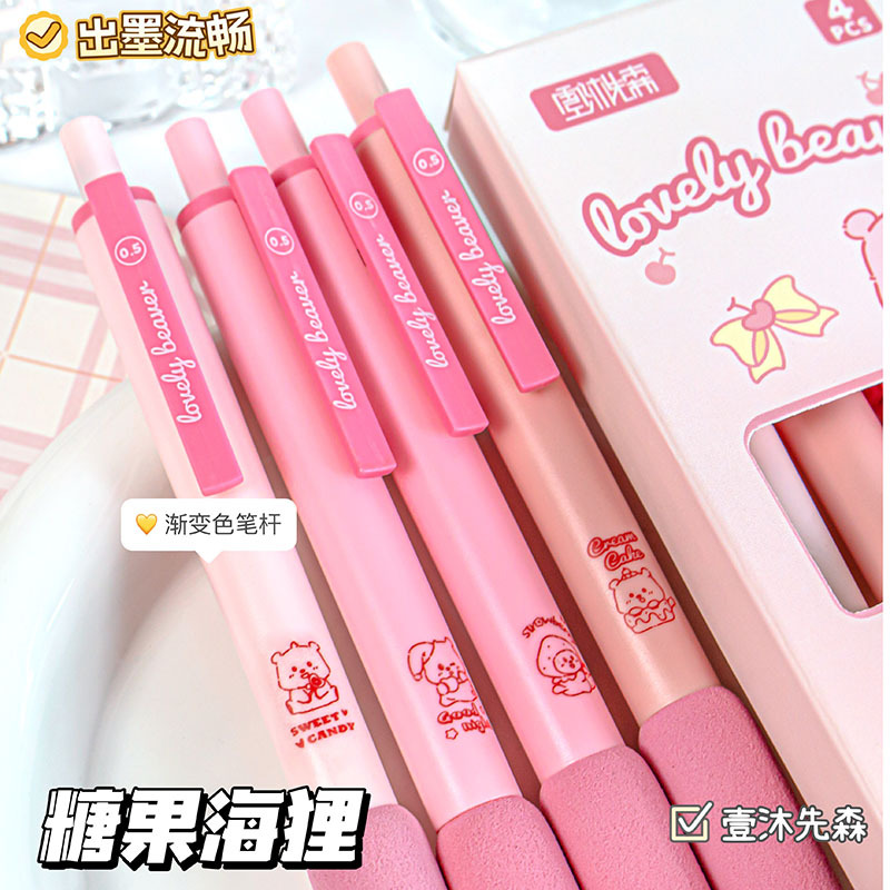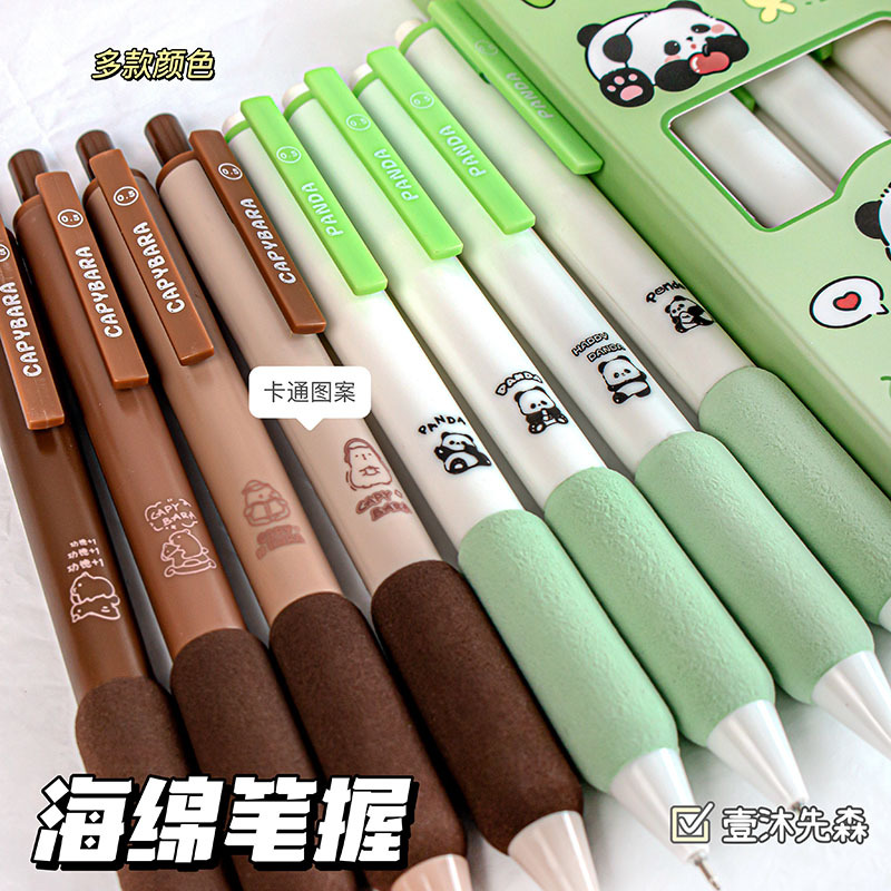 Caricatura encantadora lápiz neutro de secado rápido, manga de agarre suave, lápiz de presión de liberación, lápiz de cepillo de alto valor de color, lápiz ST negro