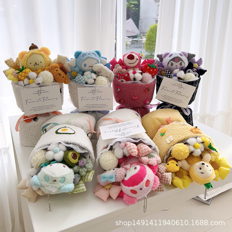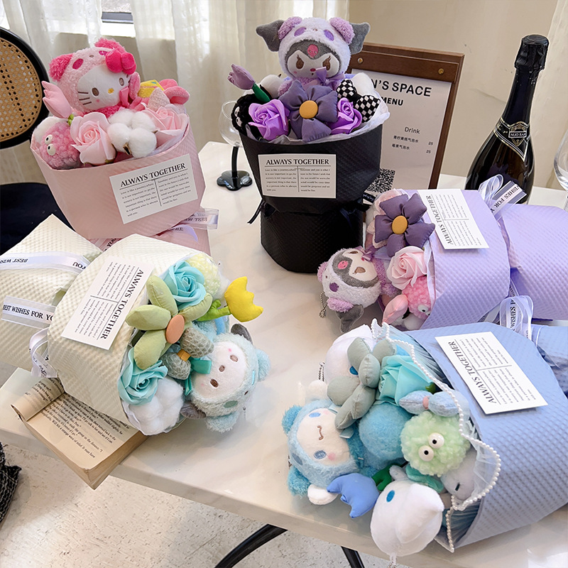| Ramo de flores | Ramo de muñecas |