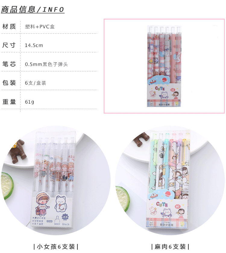| Color de recarga | Navidad 6 pack,Cala oso 6 pack,Pequeño dinosaurio 6 pack,Oso de 6 piezas,6 piezas de carne de cáñamo,Niña 6 piezas,Tigre 6 pack,Vaca de 6 piezas,Pack de 6 espacios en blanco y negro,Corazón de flores 6 pack |