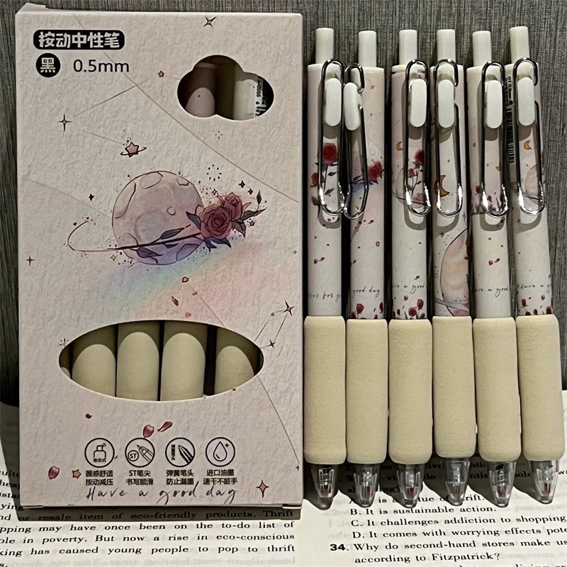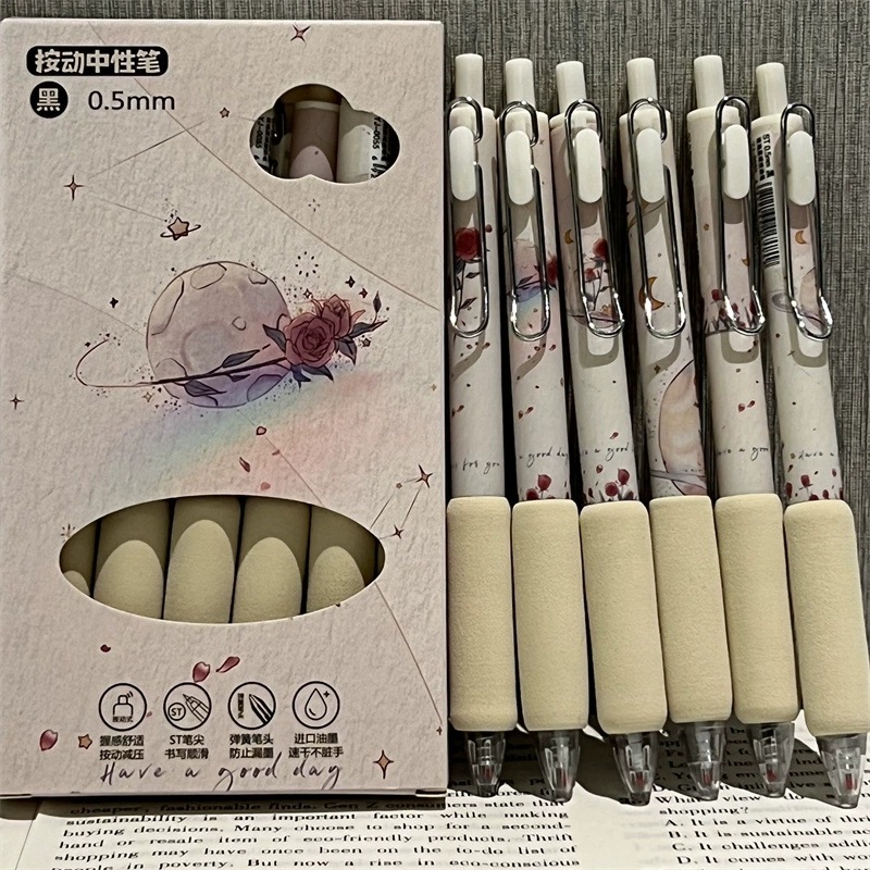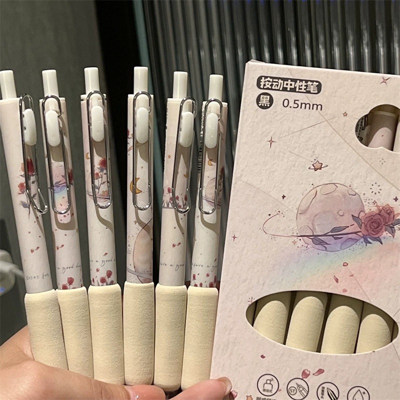 Saturno de rosa pulsable bolígrafo neutro viento alto valor de la cara esponjosa bolígrafo negro cabeza de cepillo negro rápido secado bolígrafo