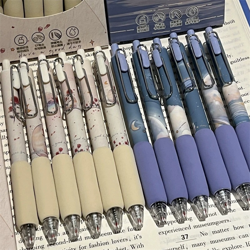 Corea del Sur papelería fresca pluma de gel de 6 colores de dibujos animados lindo pluma de agua negro color creativo pluma de diario al por mayor