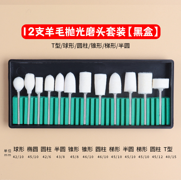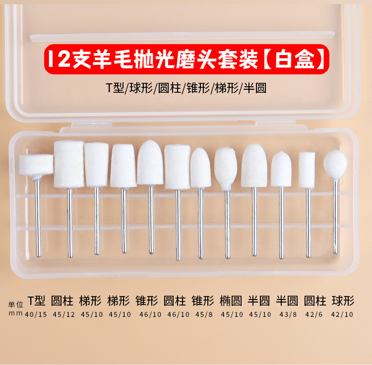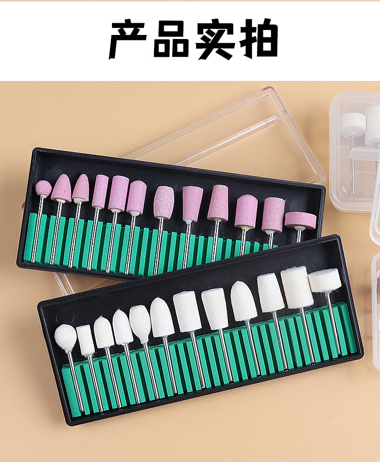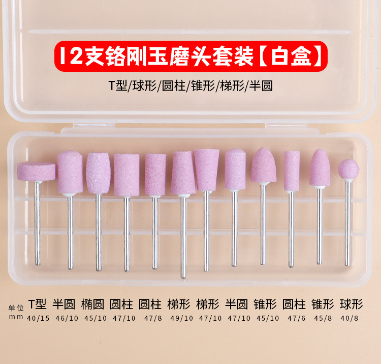 Juego de 5 piezas - uñas pulidas, juego de 12 piezas de caja roja - juego de pulido de descarga de armadura, juego de 12 piezas de caja azul - juego de pulido de descarga de armadura, juego de 12 piezas de caja blanca - cabeza de pulido de lana, juego de 12 piezas de caja blanca - cabeza de pulido de Corindón de cromo rosa, anillo de pulido grueso rojo 50pcs, anillo de pulido fino azul 30pcs