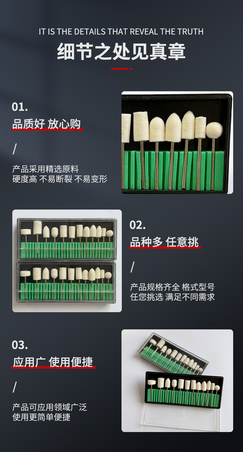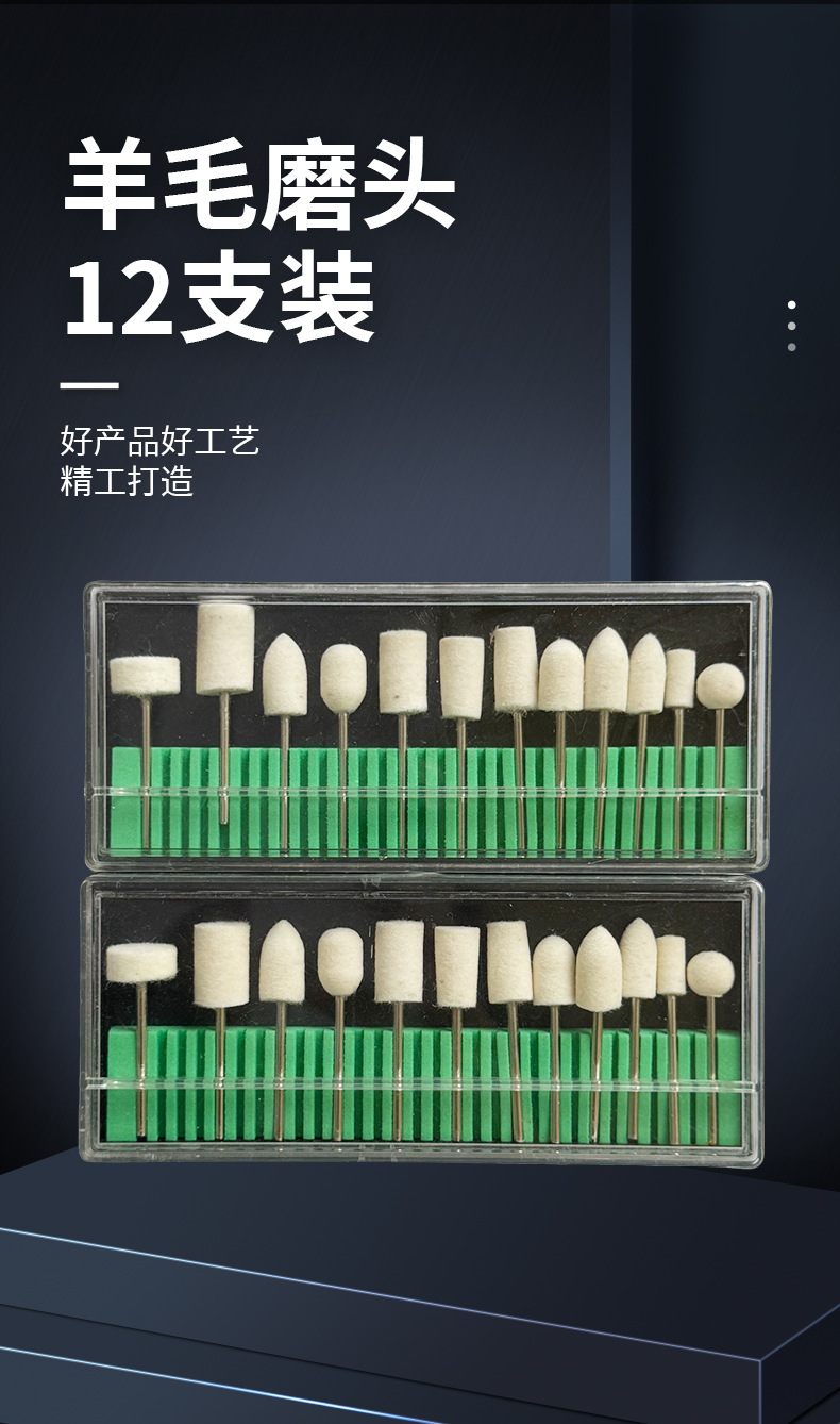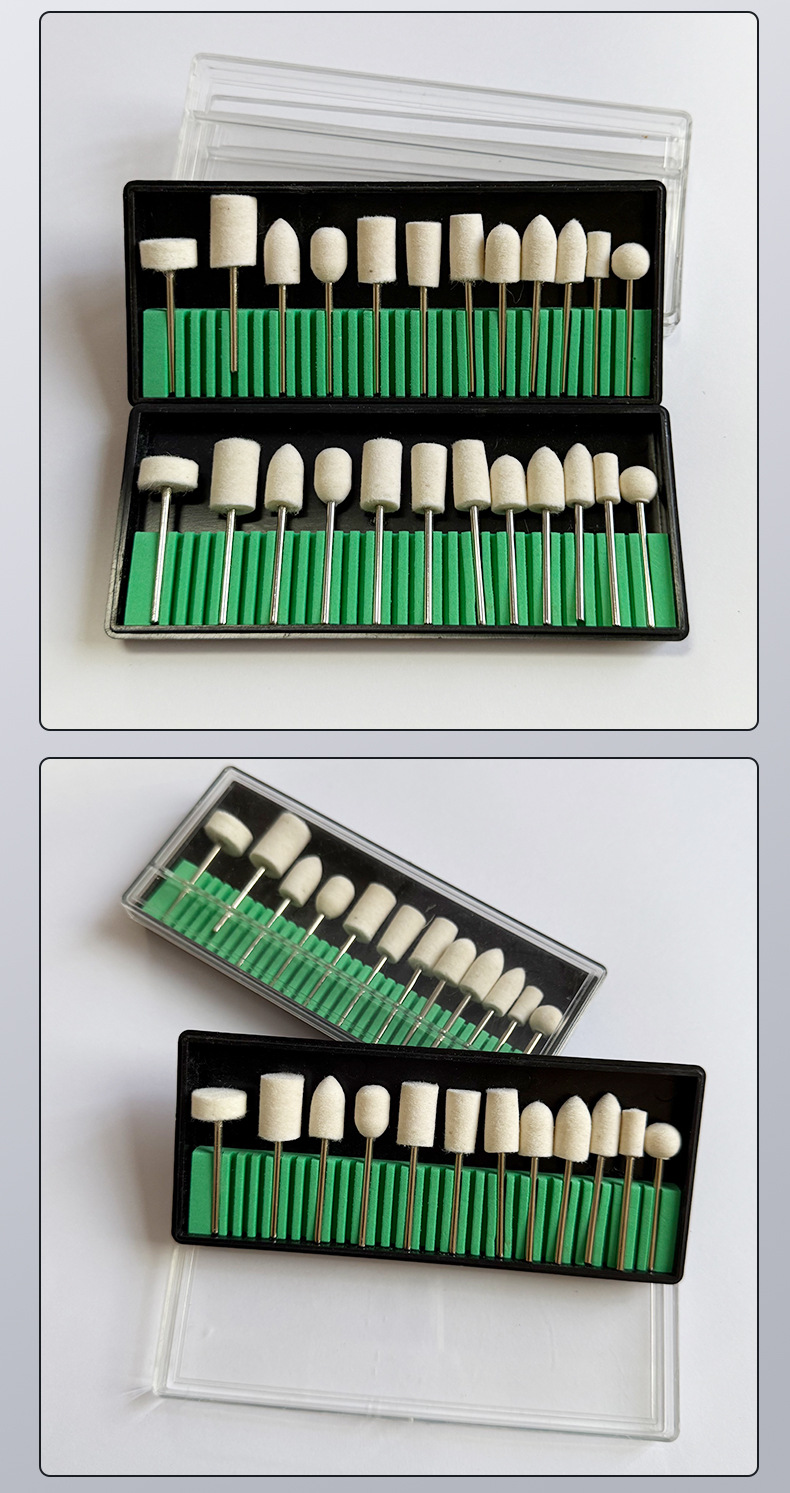 12 piezas de molienda de lana, amolador de uñas eléctrico, caja de molienda de lana, pulido de uñas