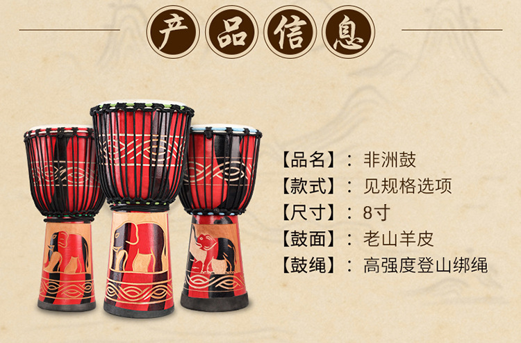 8 pulgadas Kinsel Yunhai tambor africano principiante piel de cabra indonesia tambor africano jardín de infantes práctica introductoria batería