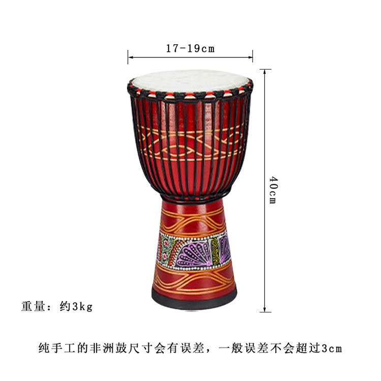Tambor africano pintado rojo de 12 pulgadas, práctica para principiantes, introducción para adultos, tambor africano de piel de cabra de caoba